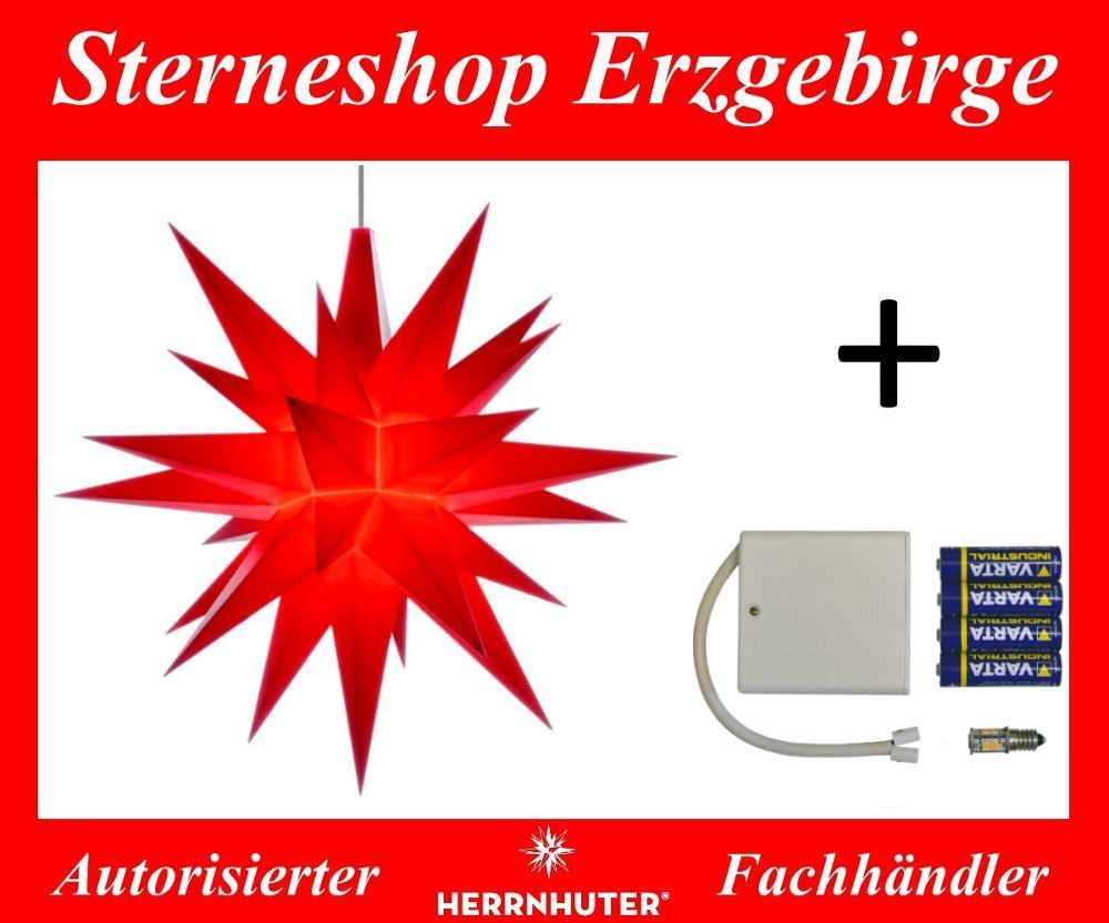 Herrnhuter Ministern A1e rot (LED) Kunststoffstern 13 cm komplett mit Batteriehalter