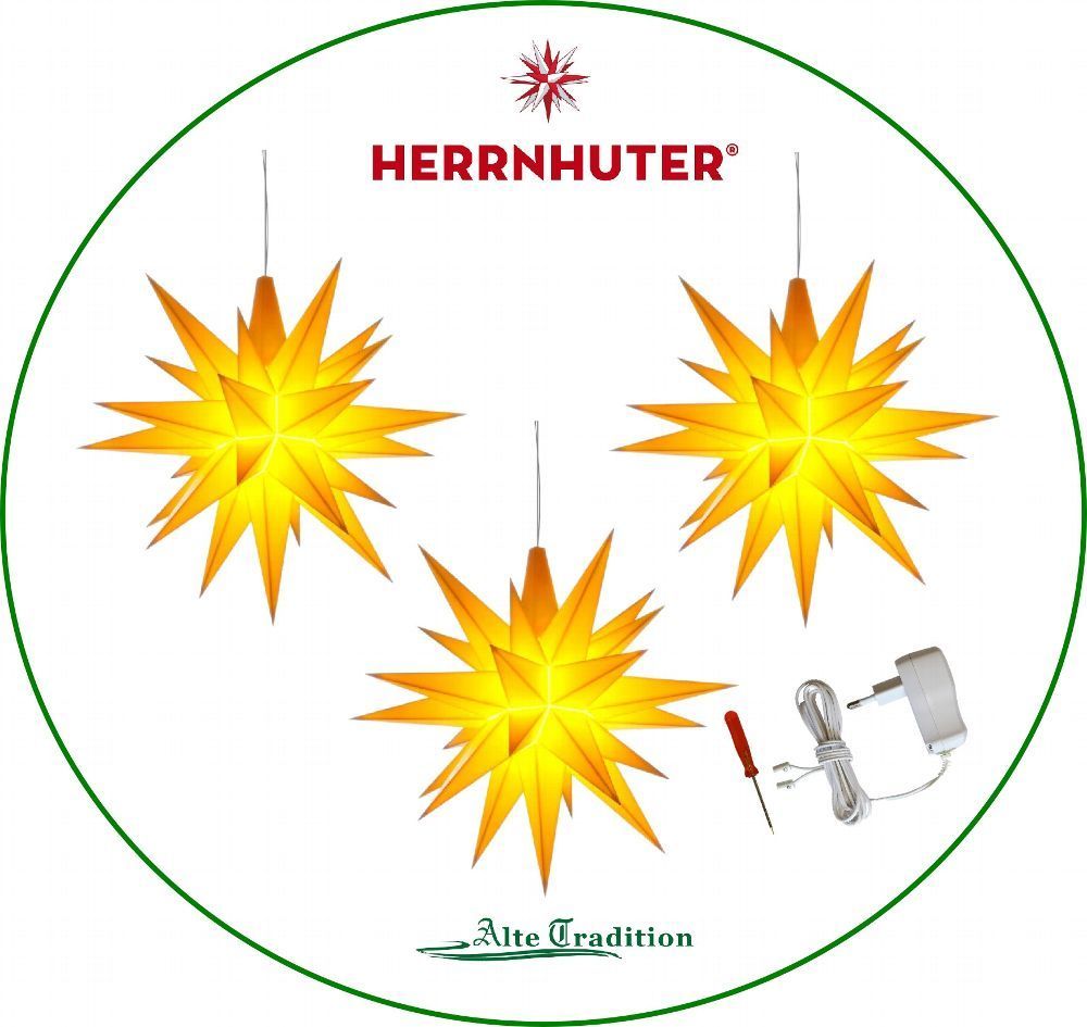 Herrnhuter Stern 3 er Set mit TIMER 6h / 9h Netzteil 13 cm gelb LED
