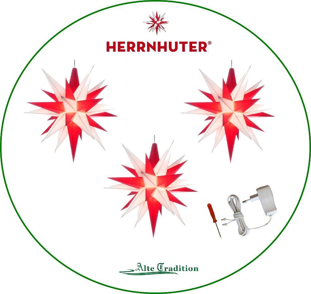 Herrnhuter Stern 3er SET Sterne inkl.3er Netzteil 13 cm Stern weiß - rot LED Komplett