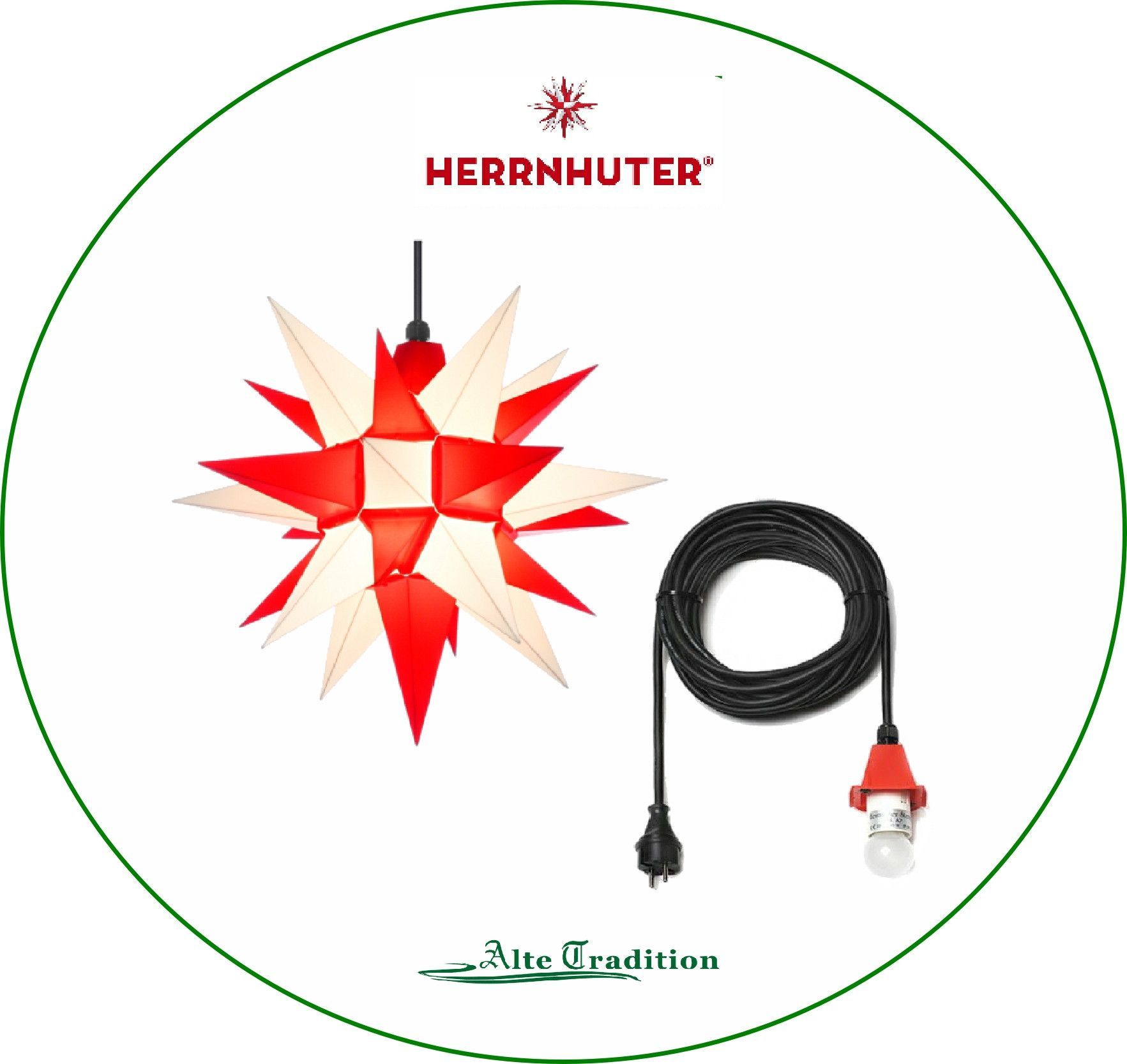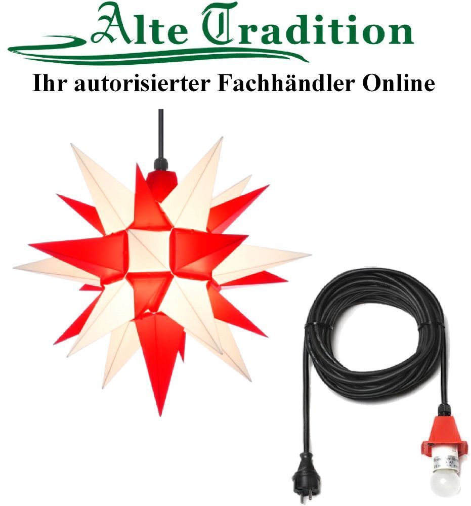 Herrnhuter Stern 40 cm Sterne weiß/ rot wetterfest Kunststoff Außen 5m Kabel LED