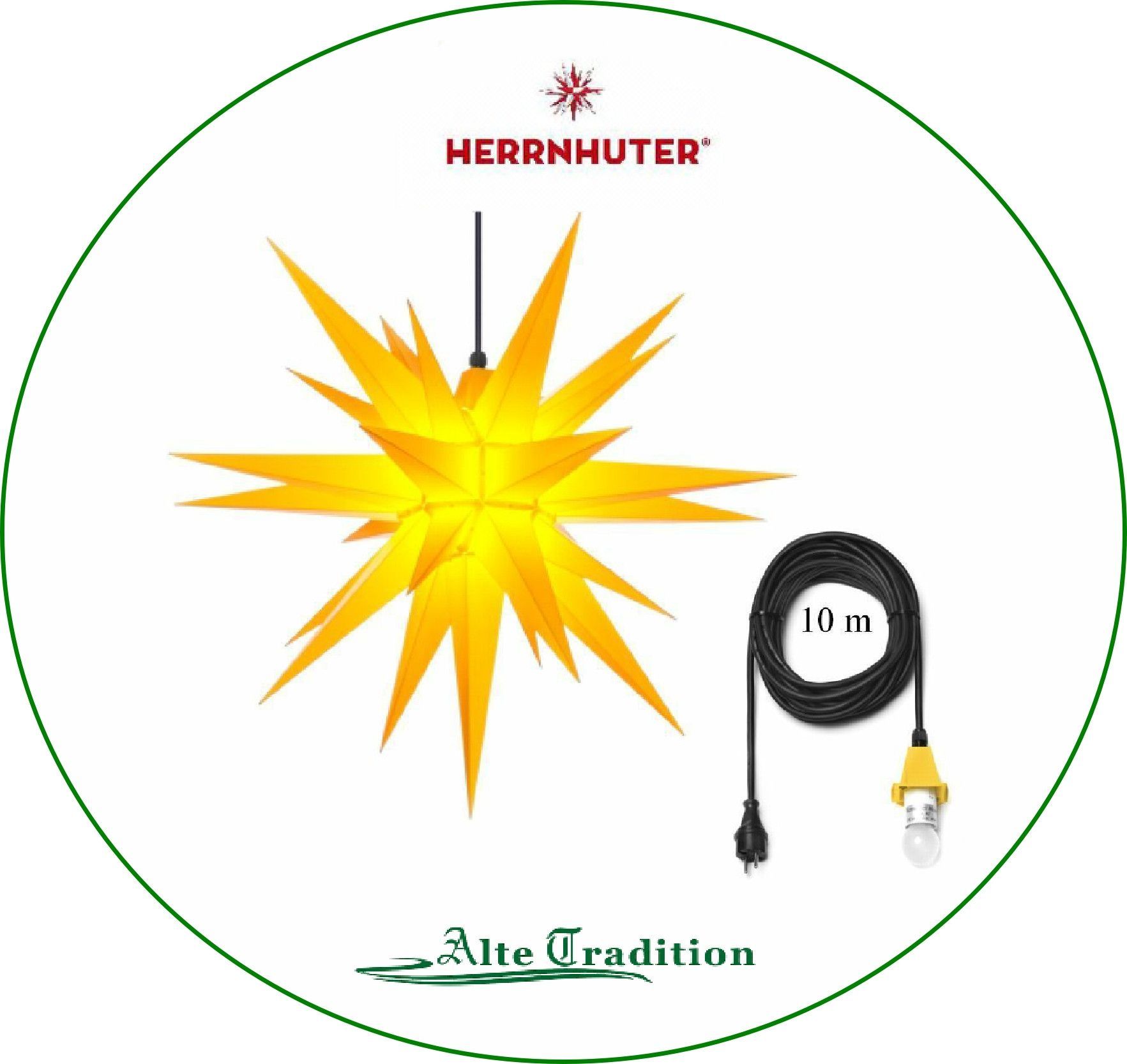 Herrnhuter Stern 68 cm Farbe gelb komplett Kunststoff für Außen, Kabel 10 m , Sterne