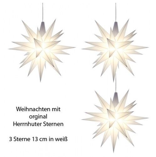 Herrnhuter Stern für Innen, Weiß 13 cm im 3er Set