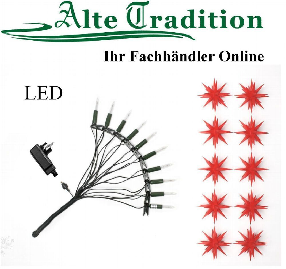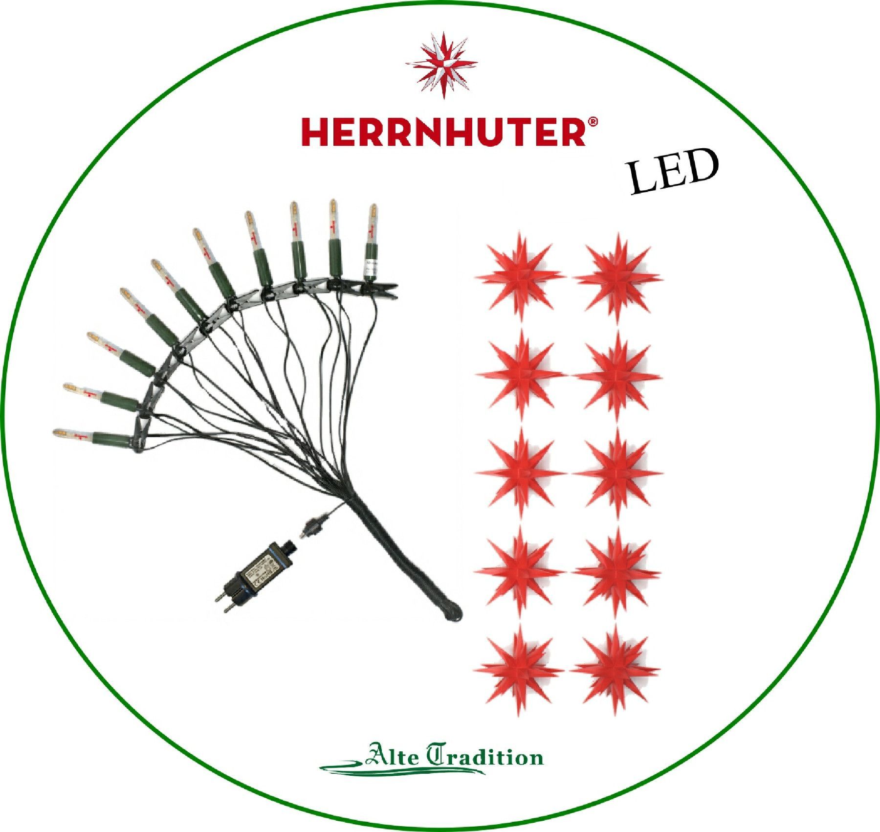 Herrnhuter Stern LED 10er Lichterkette rot 13 cm Sternen Sternenkette
