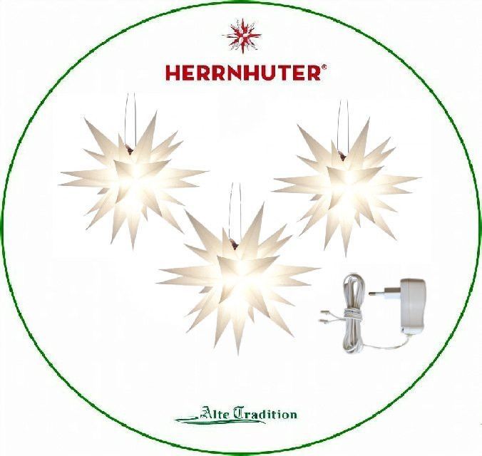 Herrnhuter Stern PAPIER 3er Set inkl. Netzteil 13 cm Stern weiß aus Papier !