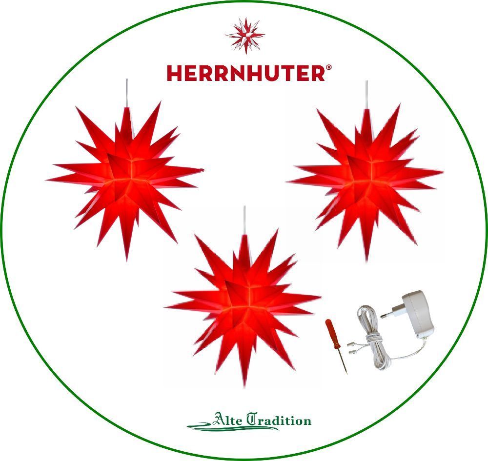 Herrnhuter Stern Set 3er Sterne 13 cm rot, rot, rot LED mit Netzteil für 1 - 4 Sterne