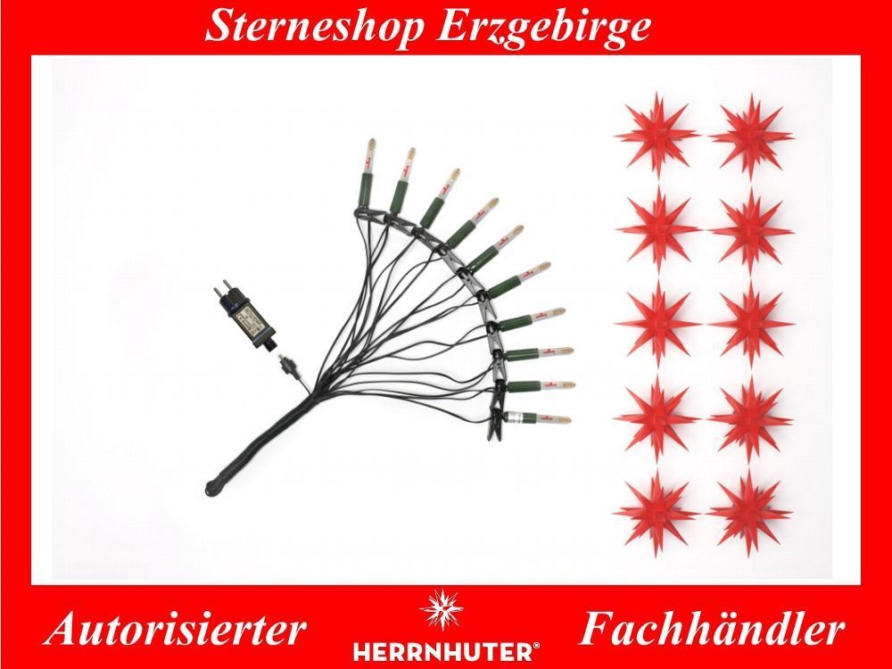 Herrnhuter Sterne Sternenkette A1s rot für Innen und Aussen mit 10 Sternen und LED