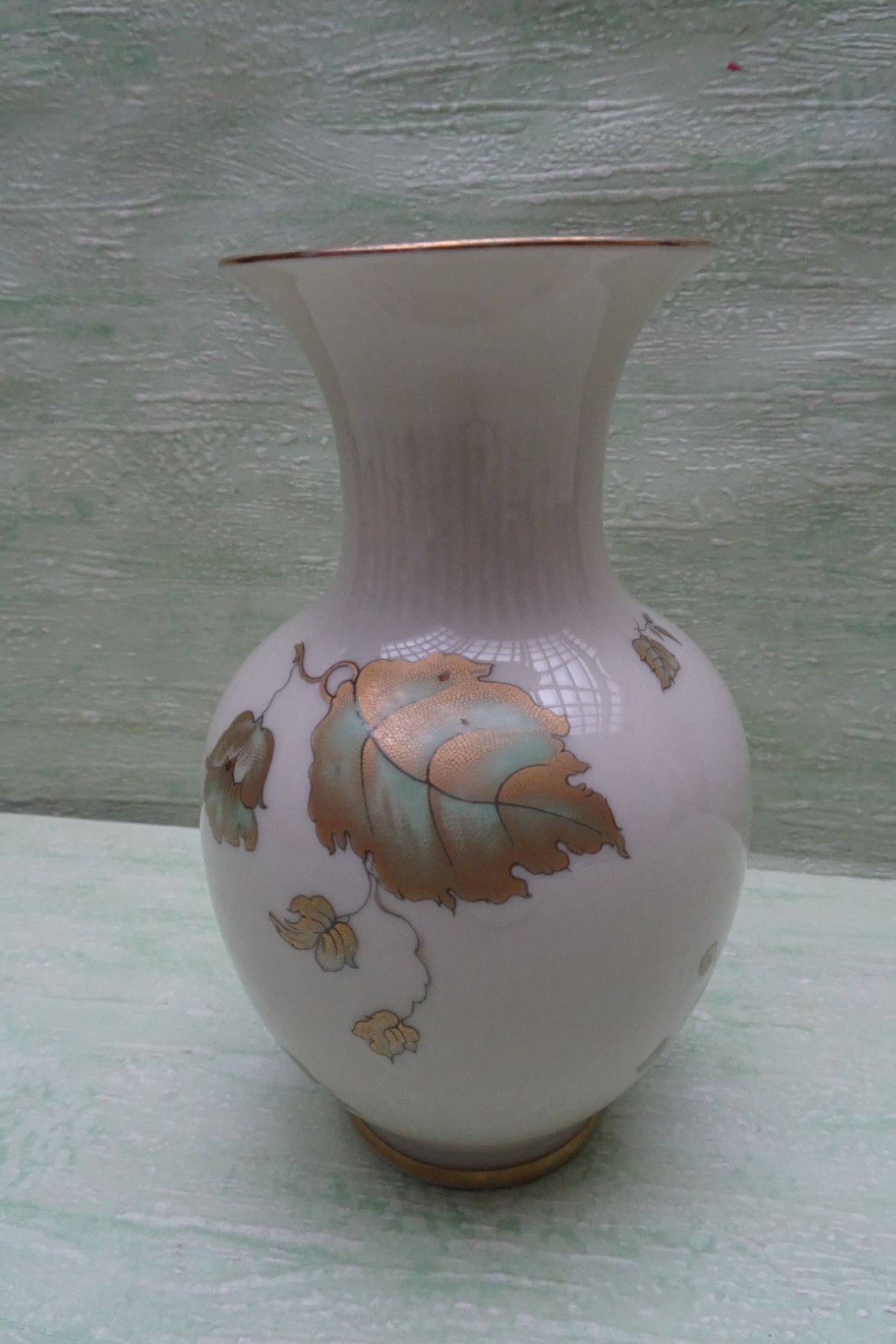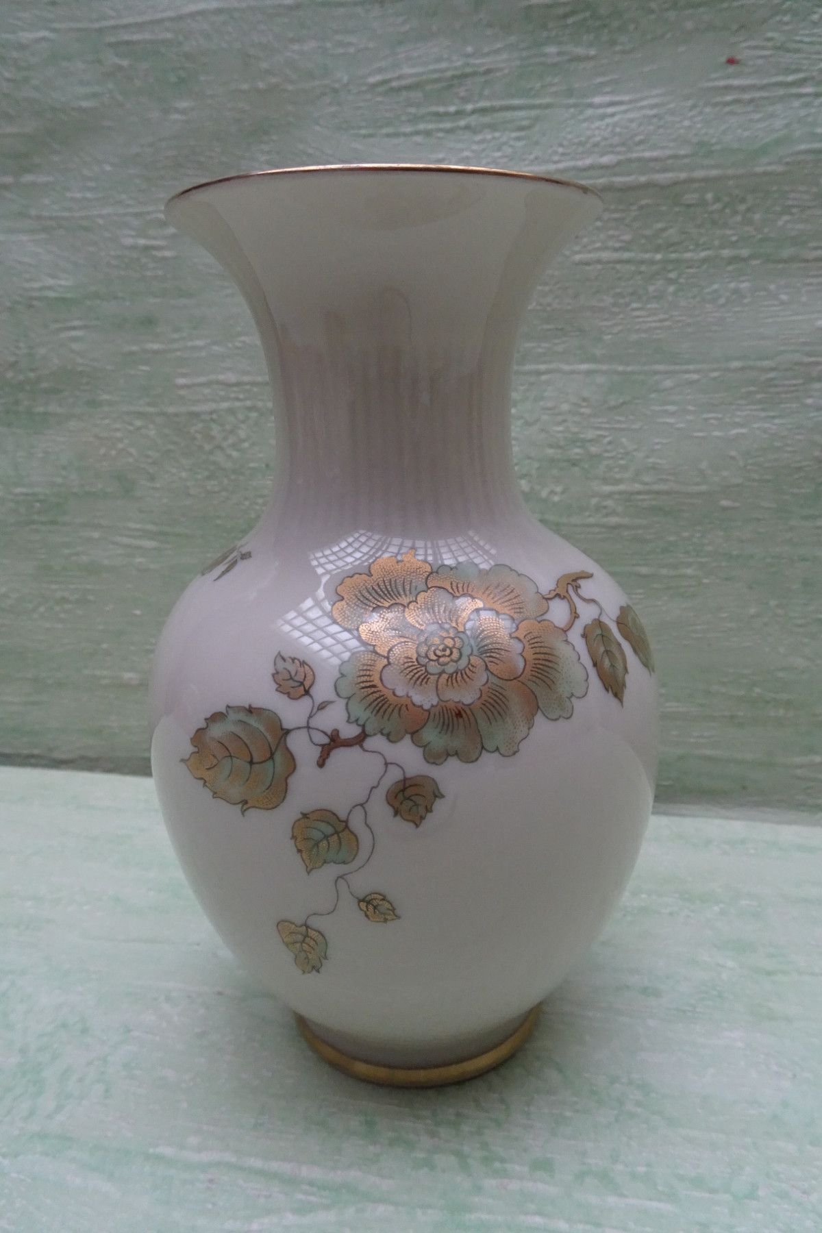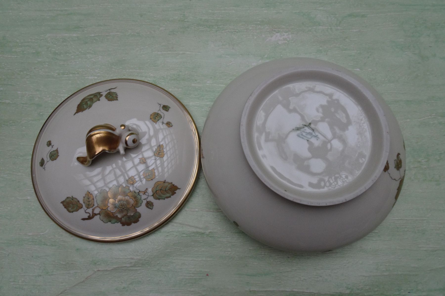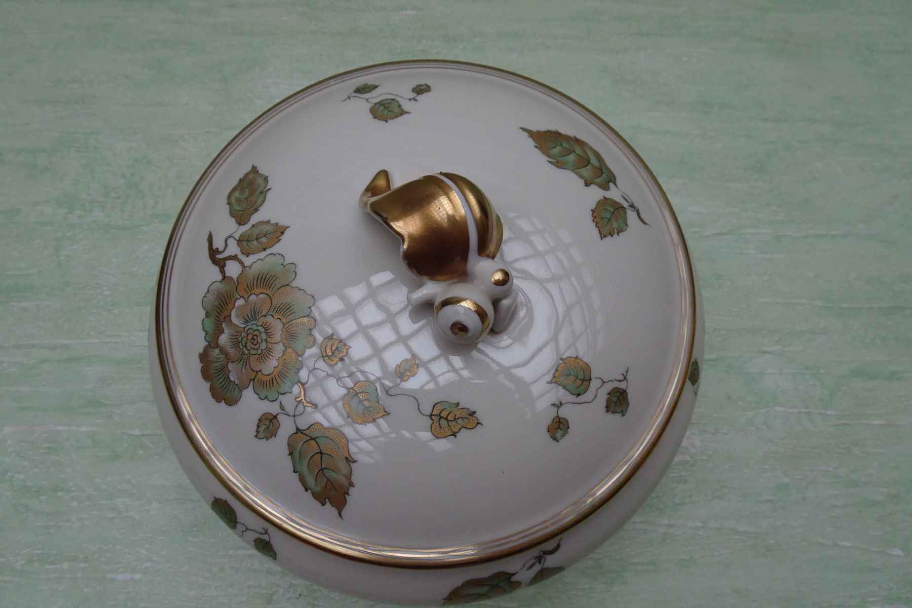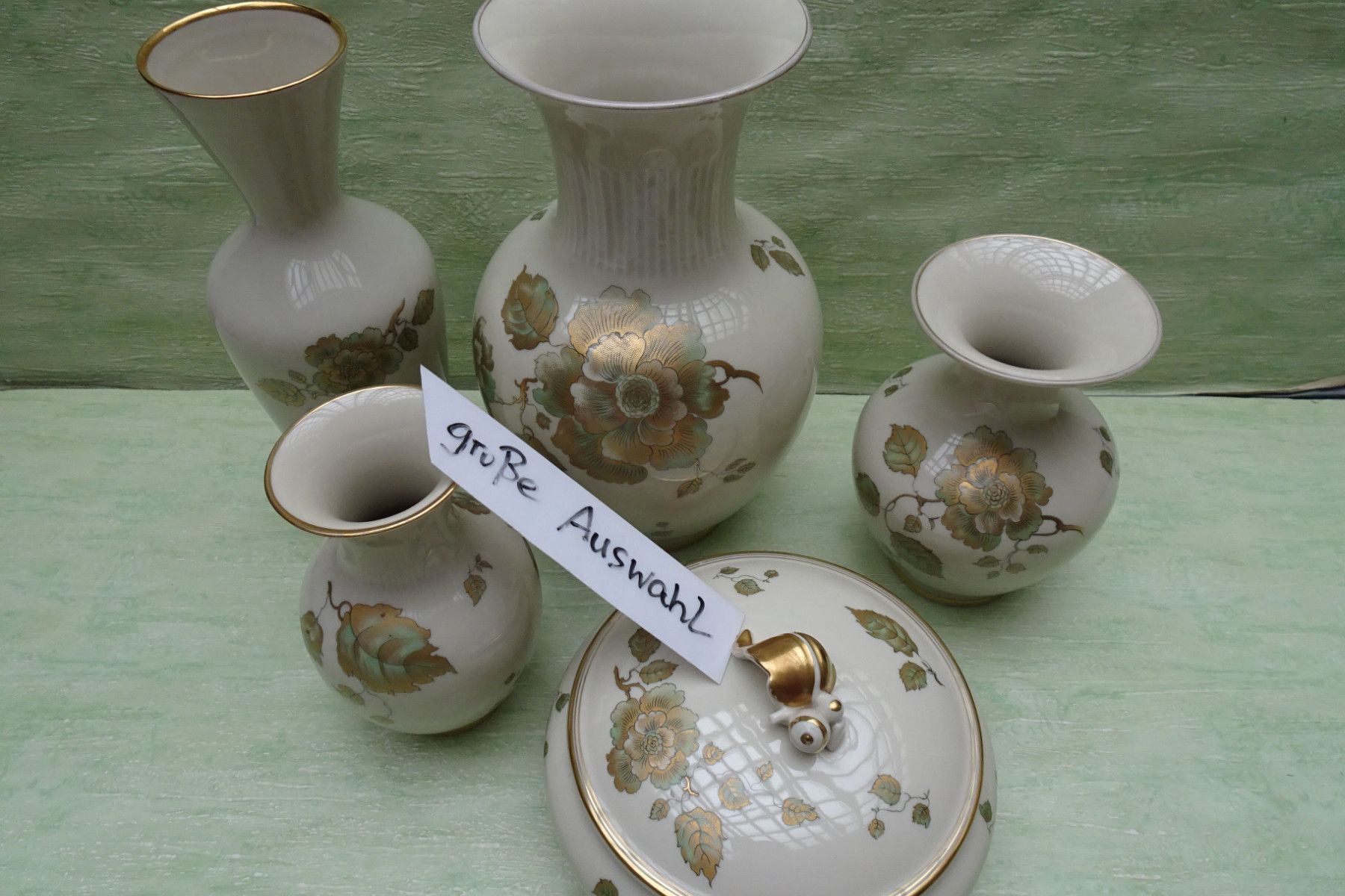 Hertel & Jacob Rehau grün-goldene Blumen Vasen Konfektschalen Bonboniere Deckeldose