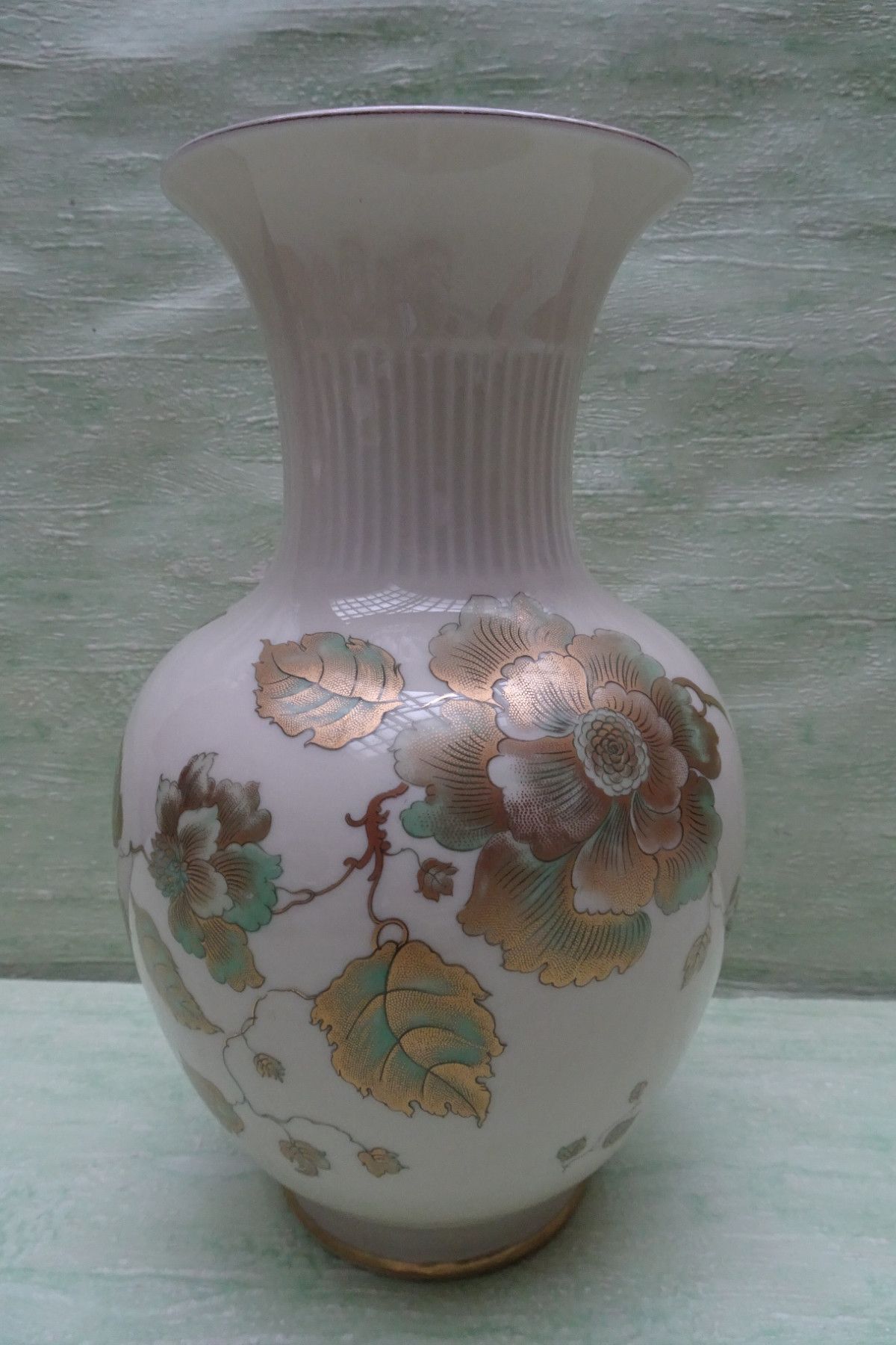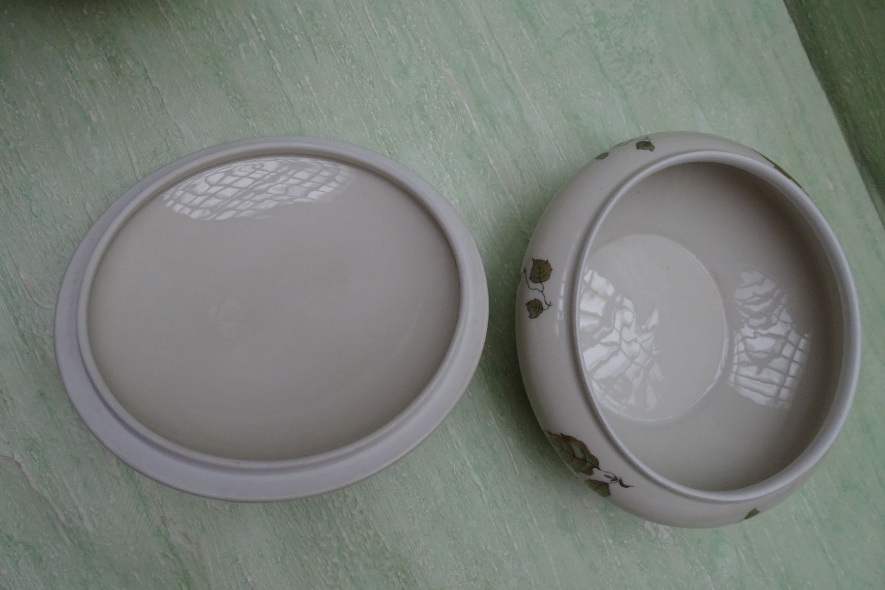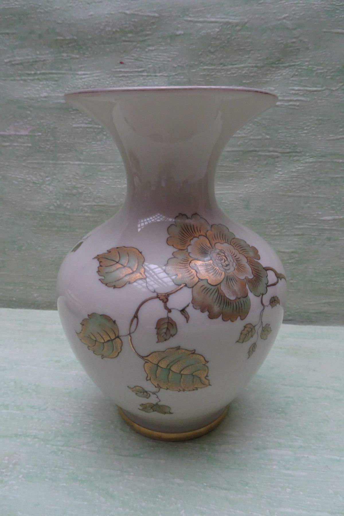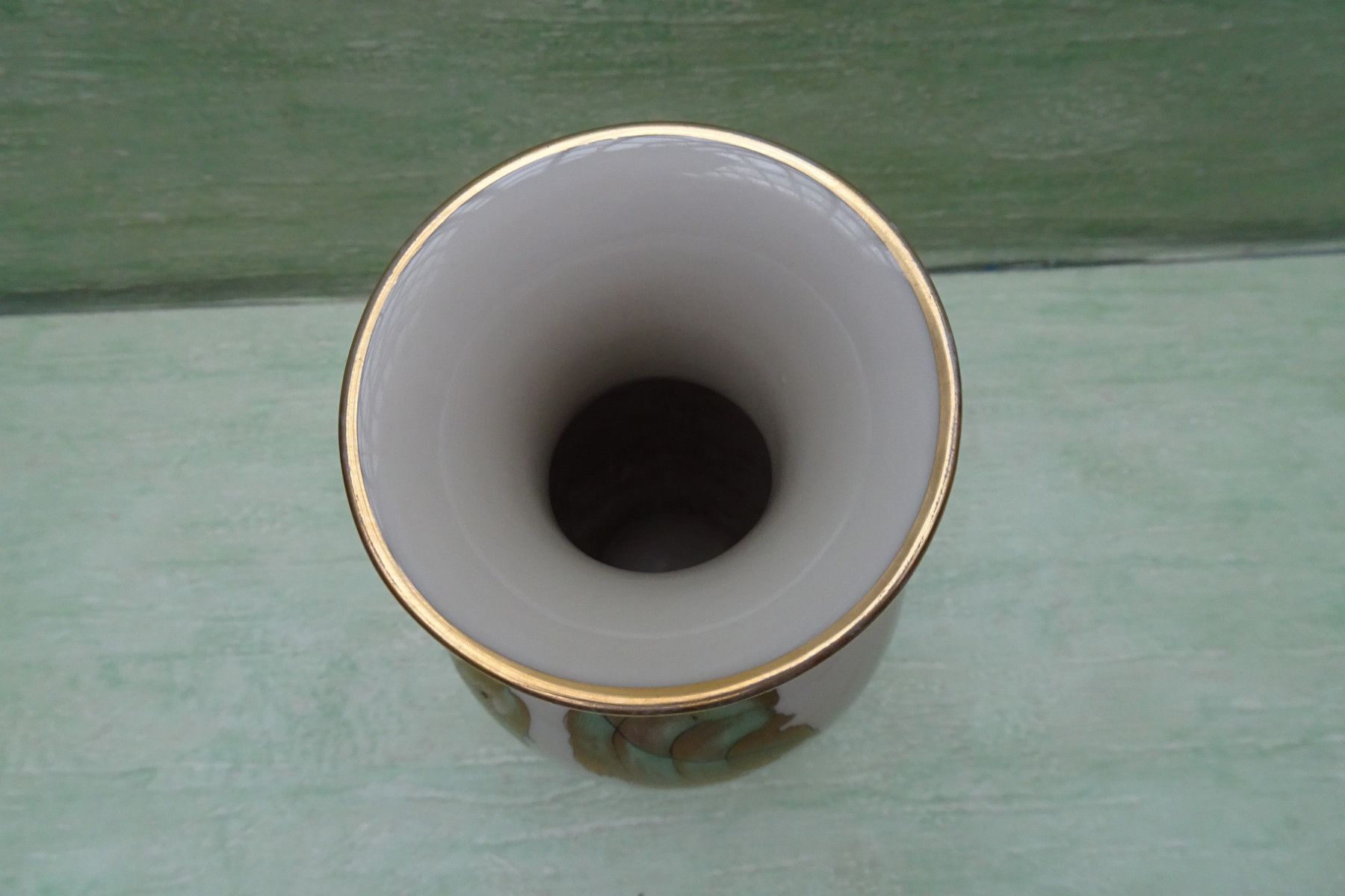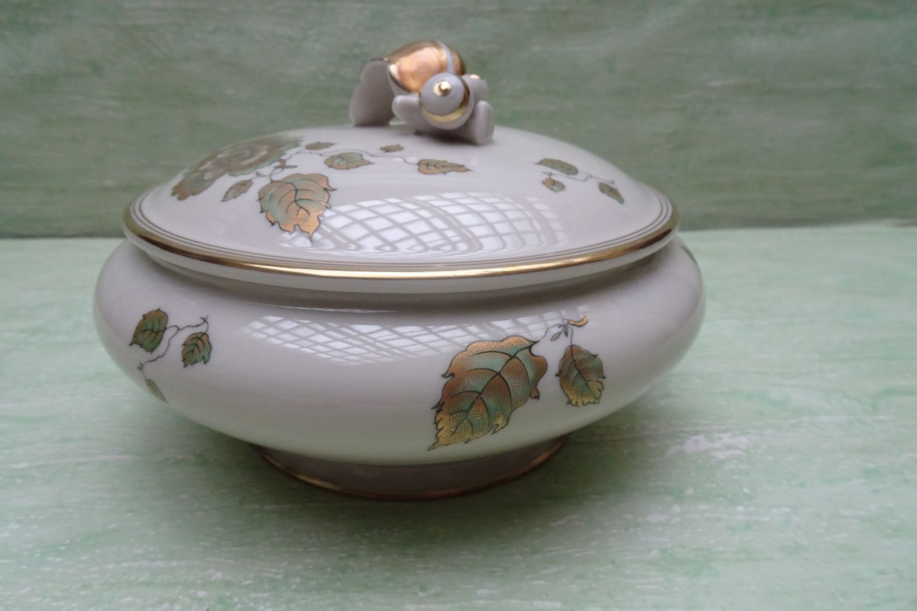 Hertel & Jacob Rehau grün-goldene Blumen Vasen Konfektschalen Bonboniere Deckeldose