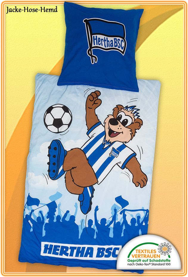 Hertha BSC Bettwäsche Logo Fahne Maskottchen Hertinho Blau Gr. 135x200cm NEU