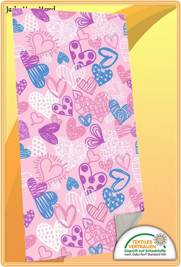 Herz Herzen Badetuch Saunatuch Handtuch Velourtuch Badestrola Gr. 75x150cm Rosa