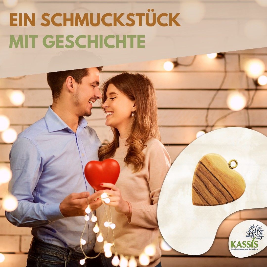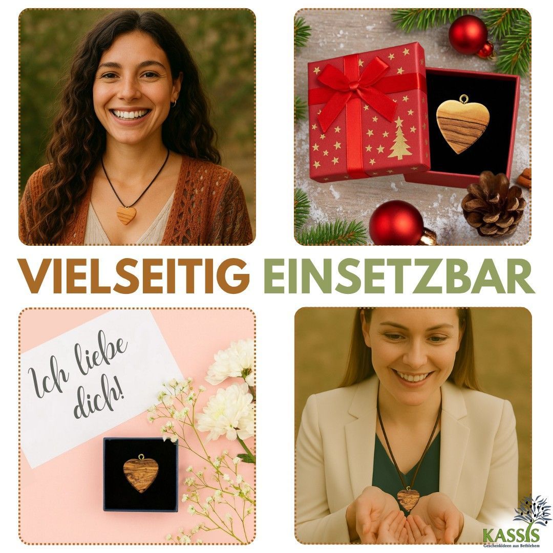 Herz Kettenanhänger aus Olivenholz romantisches Geschenk zum Geburtstag Valentinstag