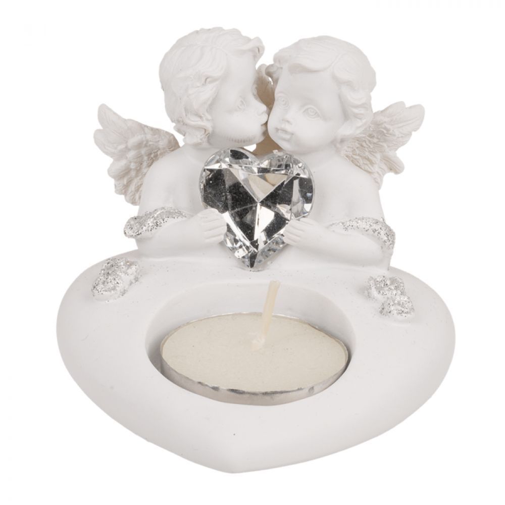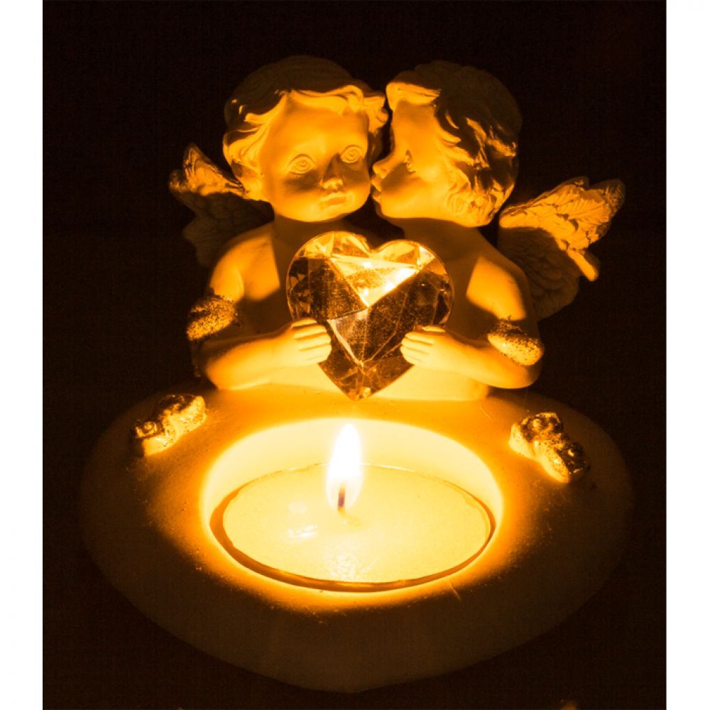 • OOTB Herz-Teelichthalter mit Engelpaar & Kristallherz