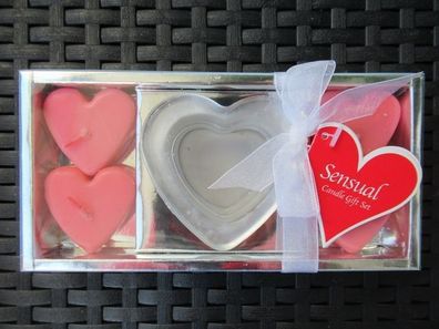 • NEU: Herz Kerzen Teelicht Halter Set 5 tlg. Valentinstag Geschenk Herzen Glas