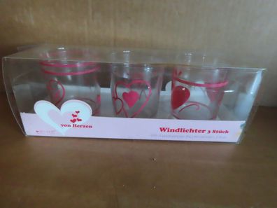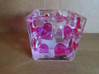 • Teelichtglas Windlicht klar mit rosa Herzen edita piaff/3St (original Verpackt)
