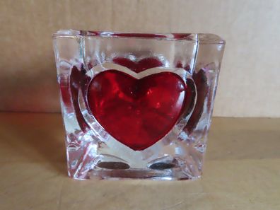 • Teelichthalter Glas 6,5cm rote Herzen 1 Stück sortiert Transparent