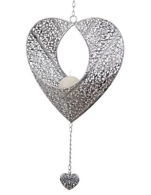 • formano Deko Windlicht Haenger Teelicht Girlande Herz 22 cm Silber Metall