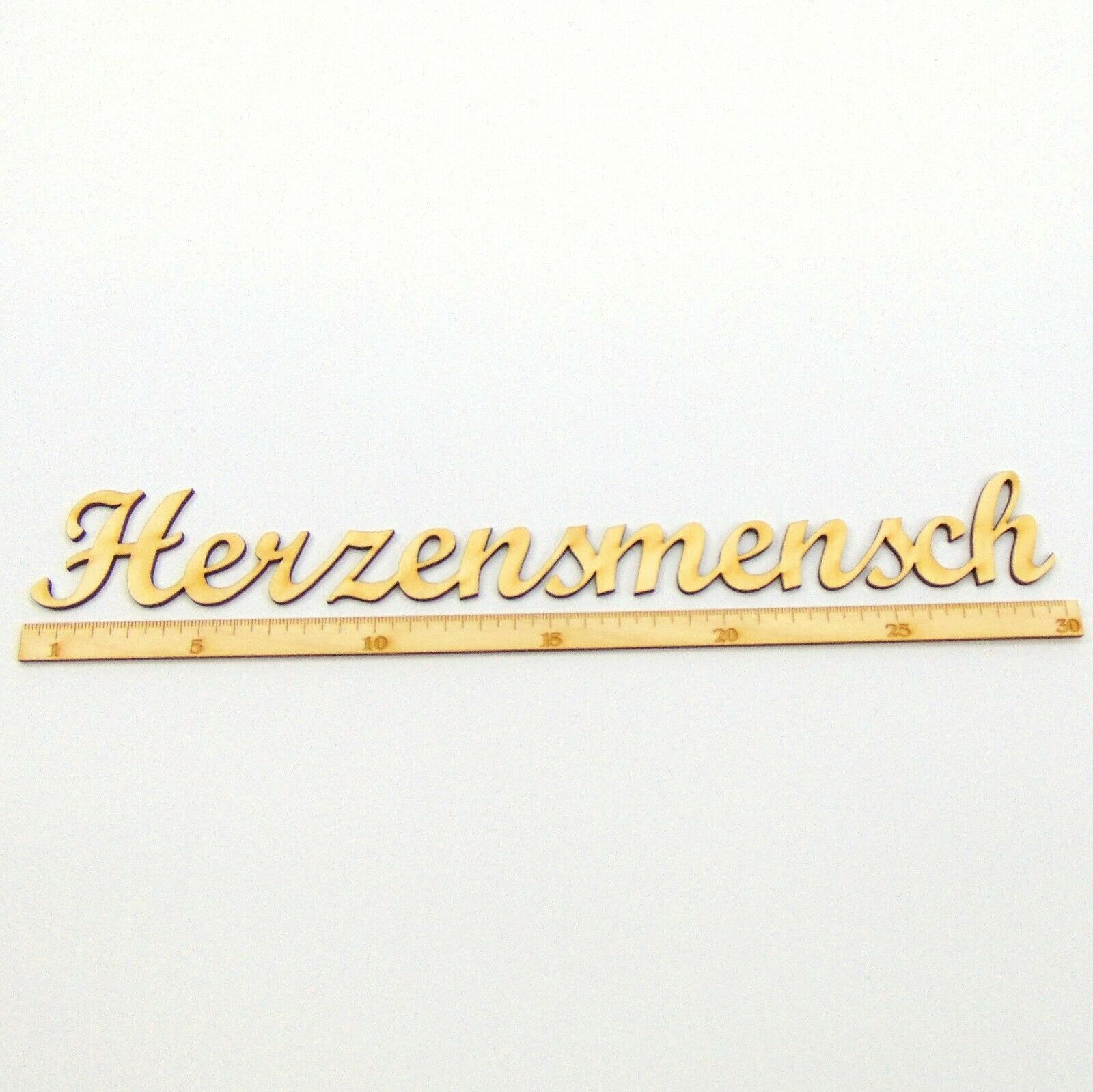 Herzensmensch als zusammenhängender Schriftzug für viele liebevolle Ideen und Gelegenheiten. Das Wort Herzensmensch hat eine Länge von 3 0 cm und ist 3,5 cm hoch. Aus 3 mm Birken Sperrholz hergestellt. Gestalten Sie es nach Ihren Wünschen oder lassen Sie es in Natur wirken. Zur farblichen Gestaltung