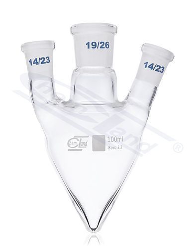 Herzflasche 3 Hälse 25ml Mittelschliff 14/23; gerader Hals -14/23 , 14/23