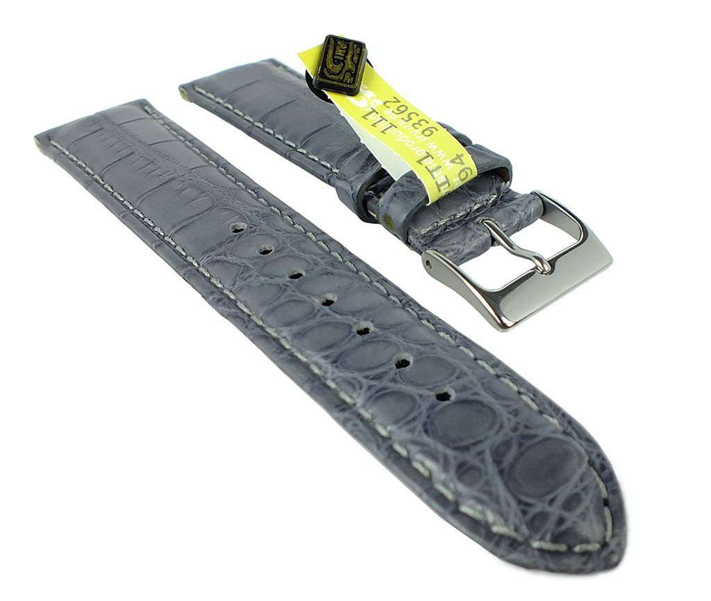 Herzog Herzog Echt Alligator > Uhrenarmband 20mm Leder grau > Naht handgenäht