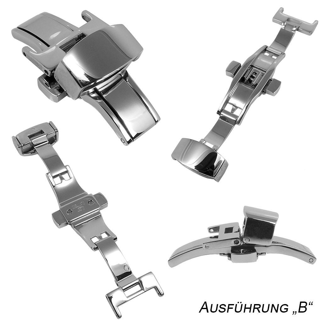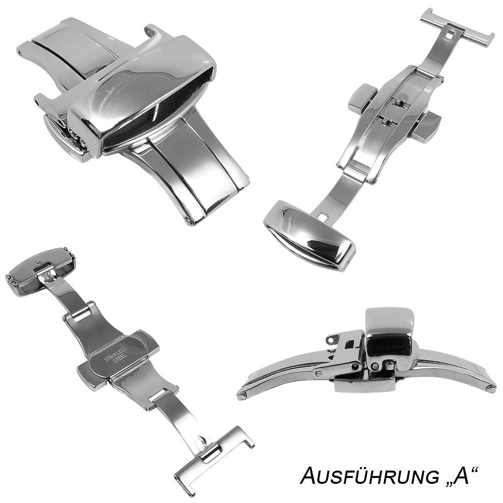 Herzog massiv Edelstahl Butterfly Faltschließe für Lederbänder Silbern