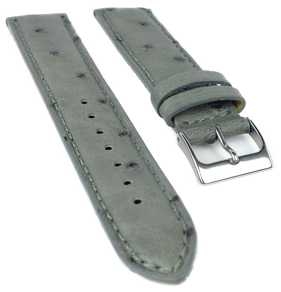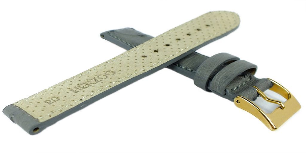 Herzog Herzog Uhrenarmband 20mm weiches Straußleder gepolstert > graues Band