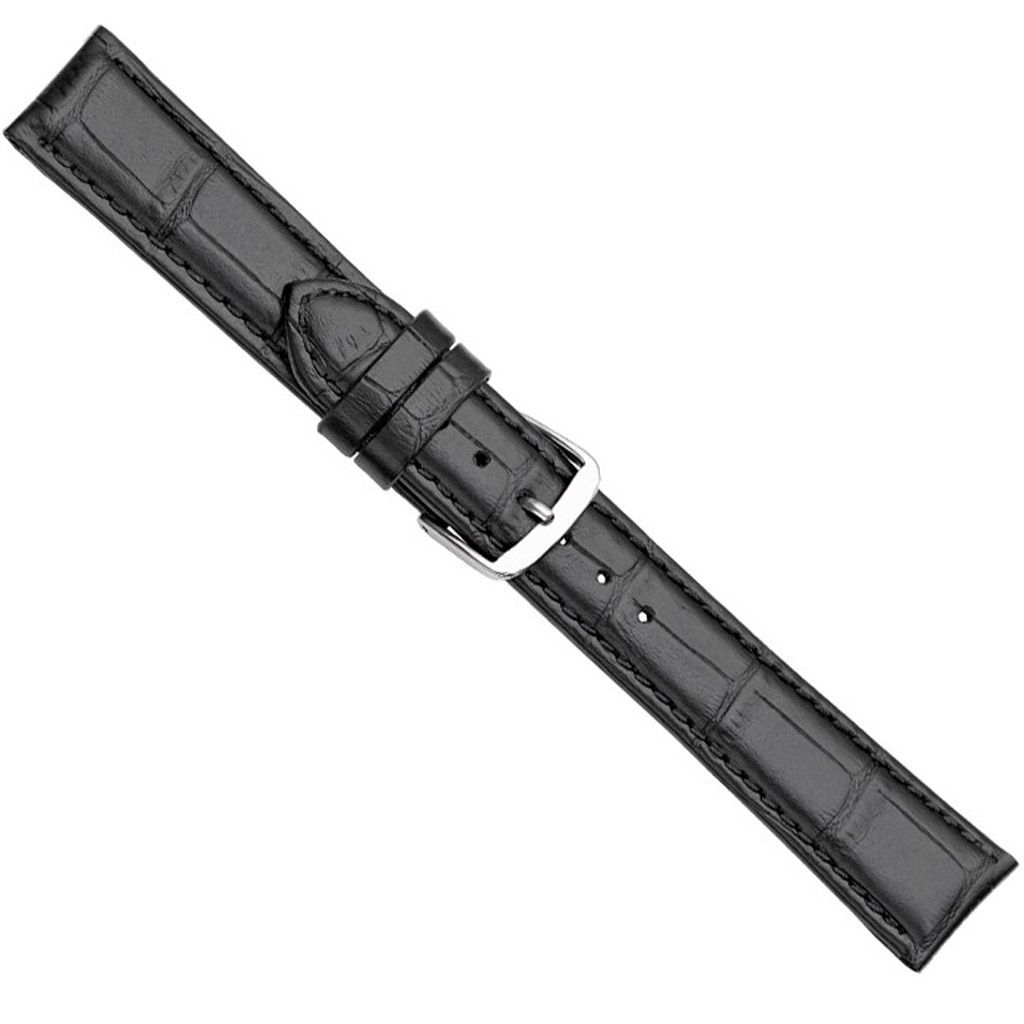 Herzog Herzog Uhrenarmband | Leder schwarz Alligatorprägung Ziernaht 20318S