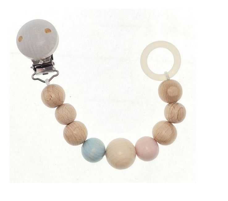 Hess Hess Schnullerkette Nature RosaBlue Holz Babykette - Made In Germany