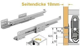 Hettich 9240891 Auszugsführung Actro Silent System 40kg 450mm 18L/R