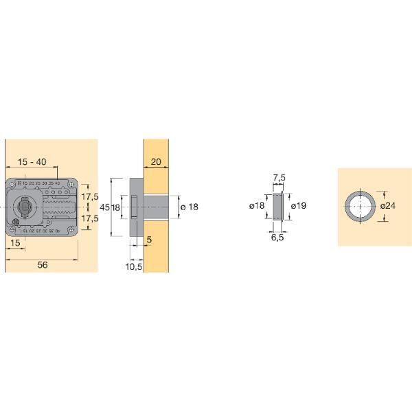 Hettich Hettich Prestige 2000 Zylinder-Kastenschloss Z23 variabel ø18 vernickelt