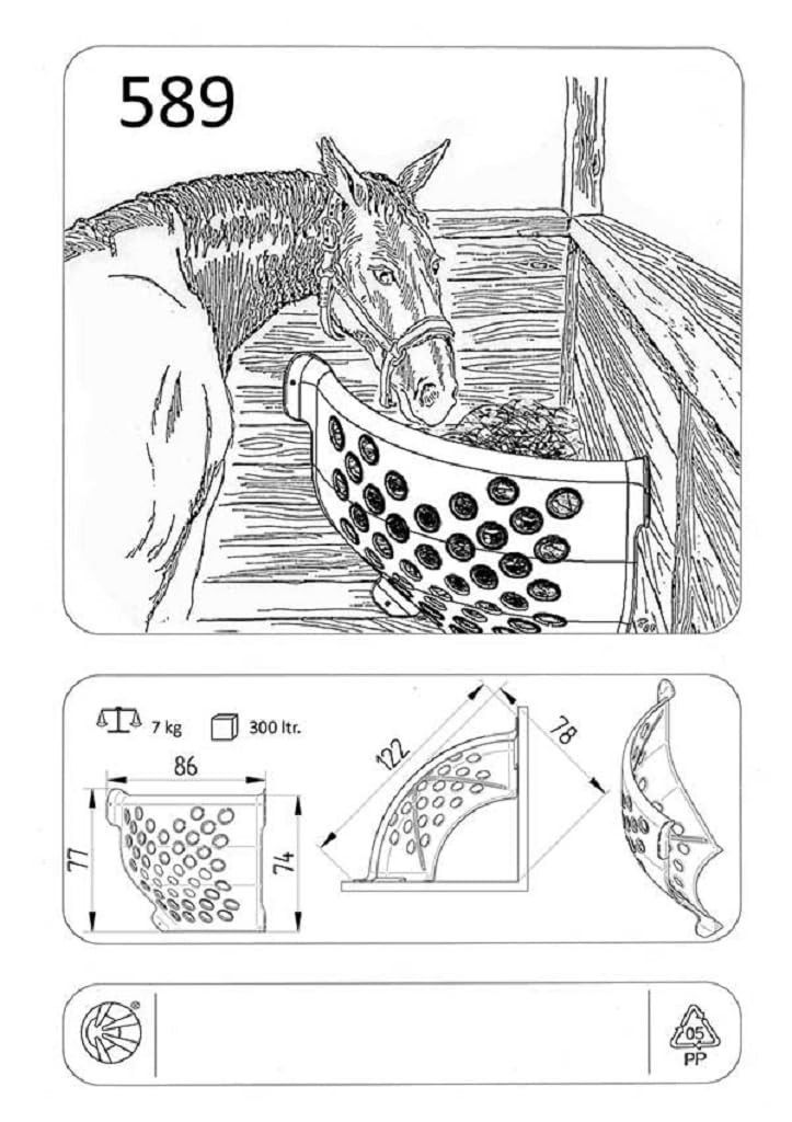 Heuraufe Futterraufe für Pferde - für 20kg/300l Raufutter - Eckraufe mit Löchern