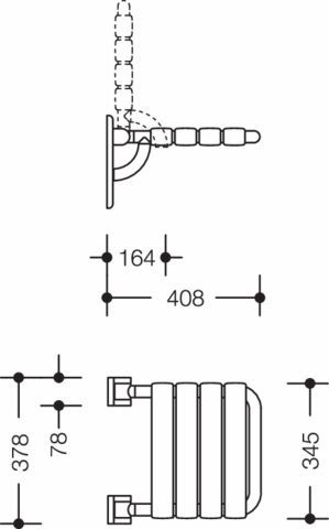 Hewi HEWI Klappsitz m. Gabelgelenk Ser 801, B:378 mm, H:259 mm, T:408 mm reinweiß