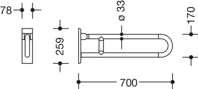 Hewi HEWI Stützklappgriff drehb. Ser 801, L:700mm, Stahlkern reinweiß