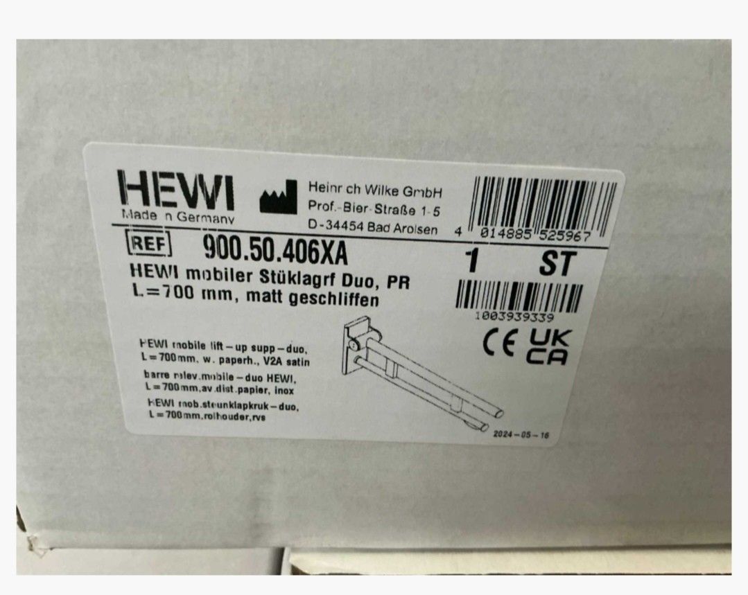HEWI Stützklappgriff Duo System 900 Länge: 700mm matt geschliffen Neu in Ovp ist im Originalzustand, CE geprüft geliefert wie auf den Fotos zu sehen ist, kein weiteres Zubehör soweit es Fehler oder Defekte gibt wären die oben beschrieben und Rot gekennzeichnet Ich unterliege gem. § 25 a UstG de