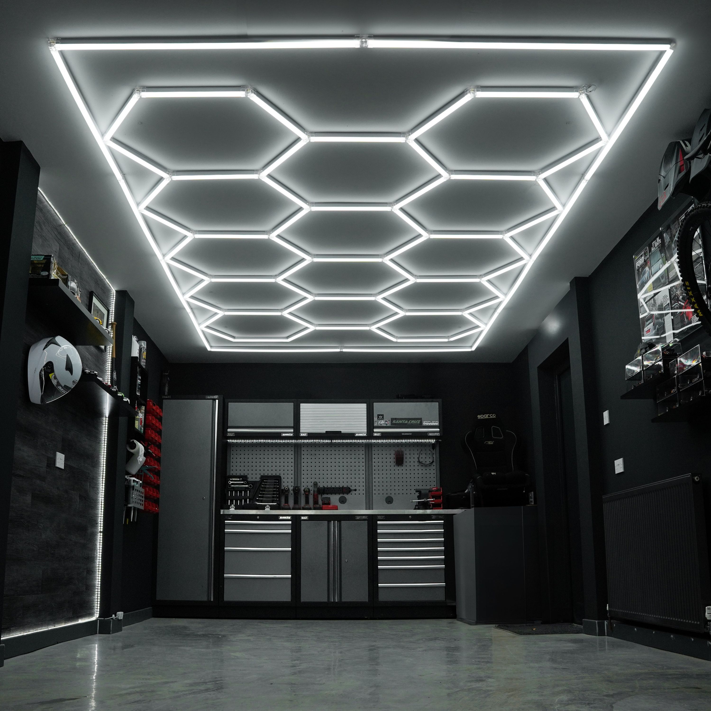 Hexagon LED Lampe 14 Leuchten & Gestell Garage Werkstatt Wand & Decken Waben