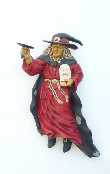 Hexe mit Kerzenhalter Rechts verkleinert 78cm für draußen aus Polyresin