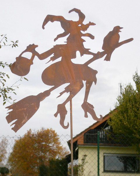 Hexe Waltraud fliegend Hexen 60 cm Rost Edelrost Metall Figur Gartenstecker