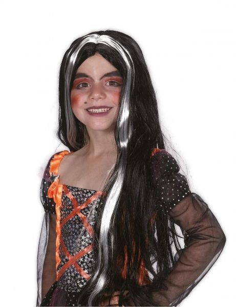 Hexenperücke für Kinder - schwarz mit weiße Strähne