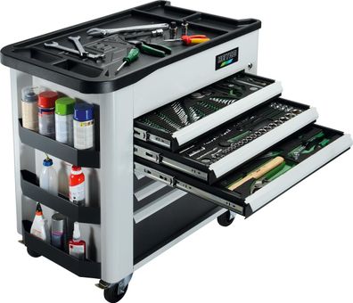 • 01127000300 Werkzeugsortiment im Werkstattwagen „BASIC“, 190 Werkzeuge in 3 Modulen