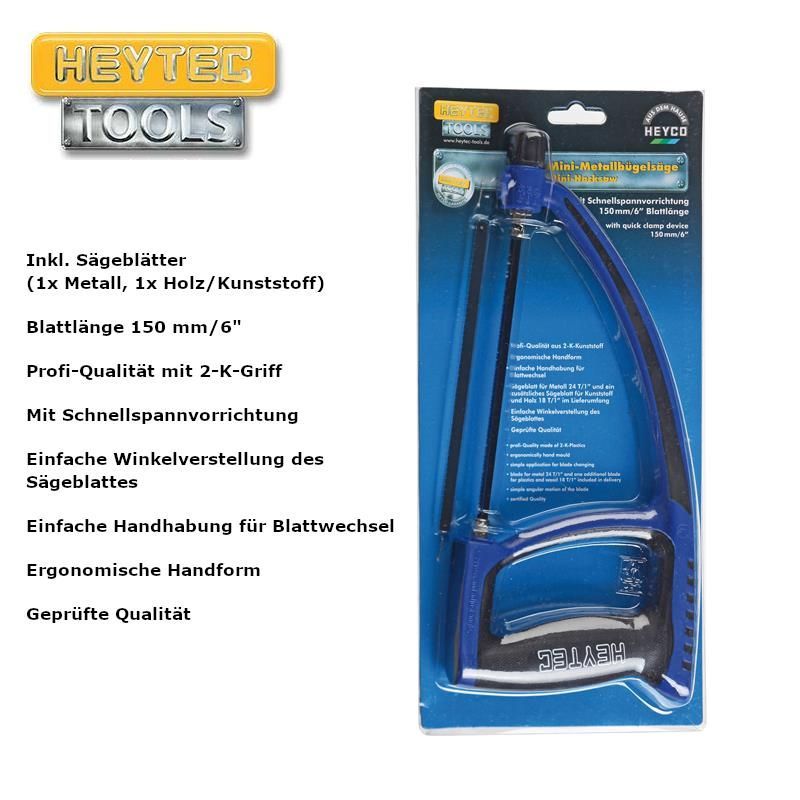 Heyco HEYTEC Mini Metallbügelsäge inkl. Sägeblätter für Metall/Holz, 5081612