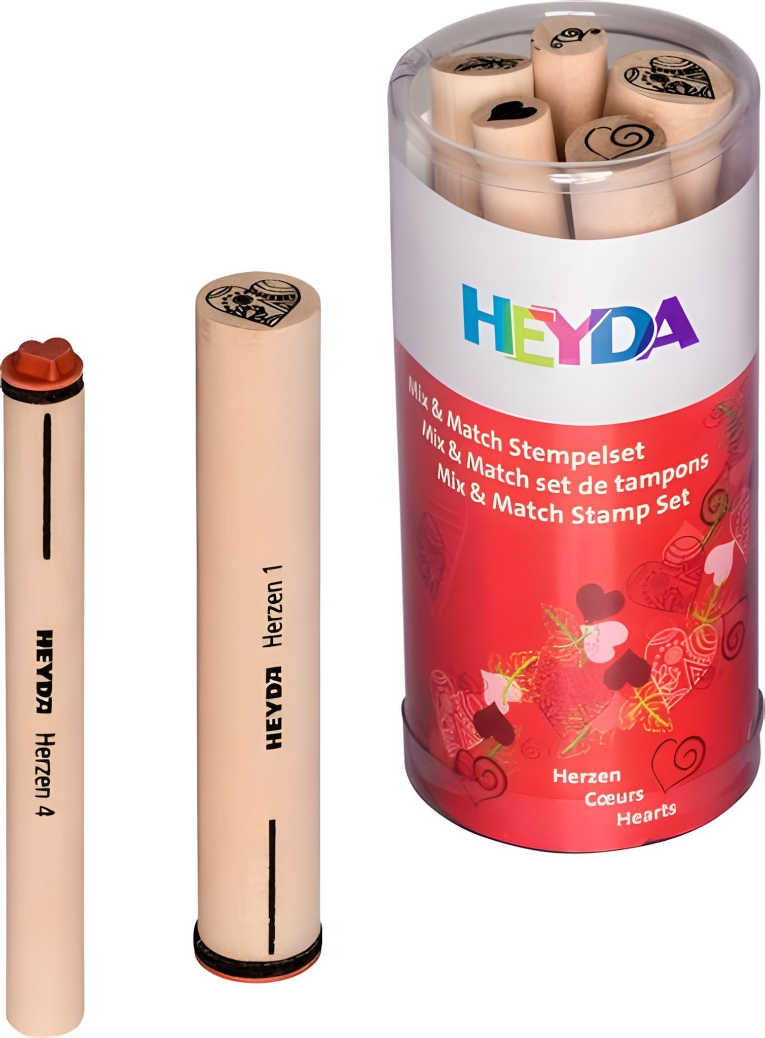 Heyda HEYDA 204888441 Stempel-Set Mix & Match Herzen Holz
