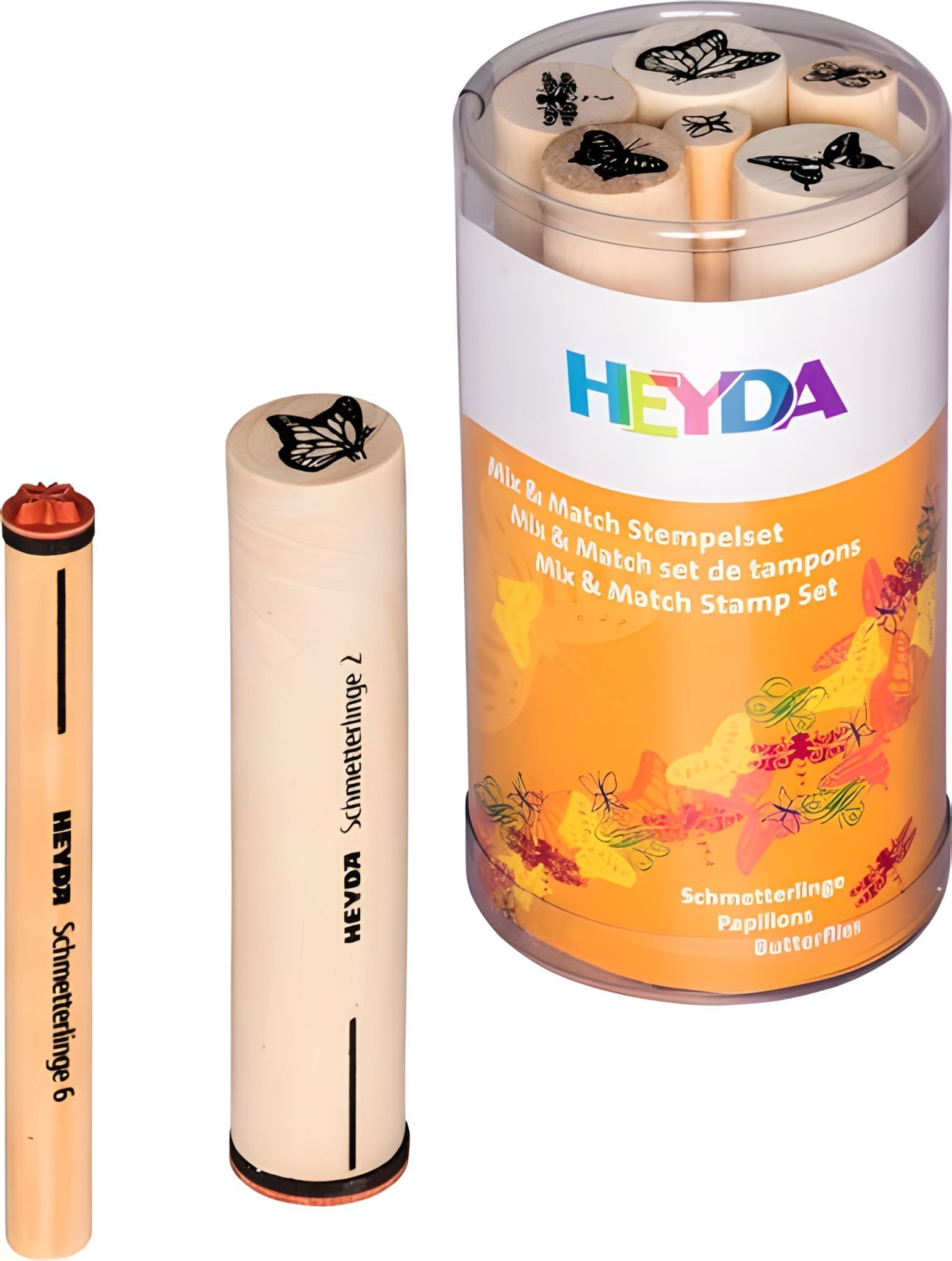 Heyda HEYDA 204888443 Stempel-Set Mix & Match Schmetterlinge Holz