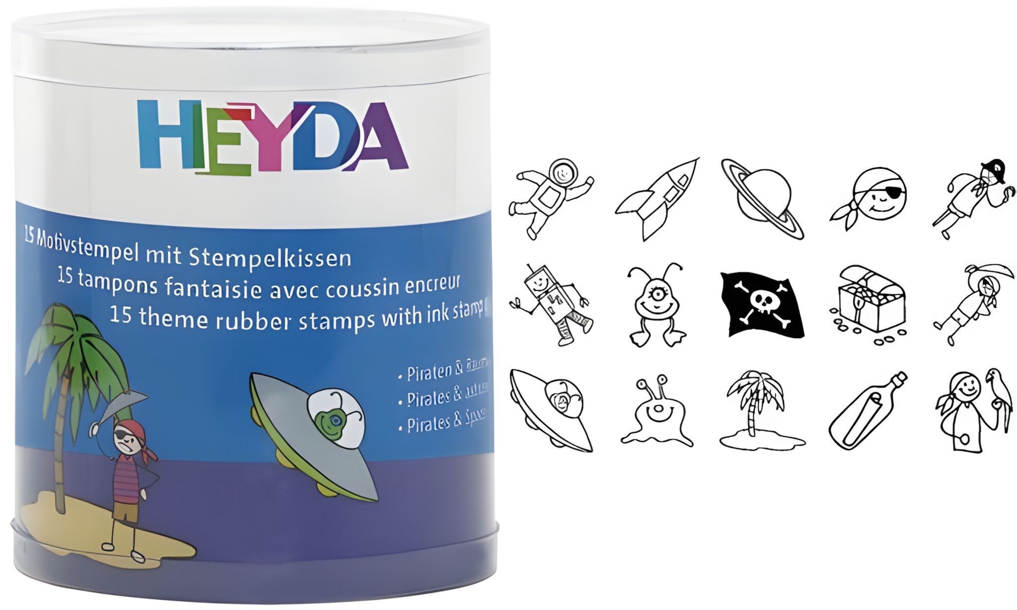 Heyda HEYDA 204888486 Stempel-Set Piraten & Raumfahrer Holz