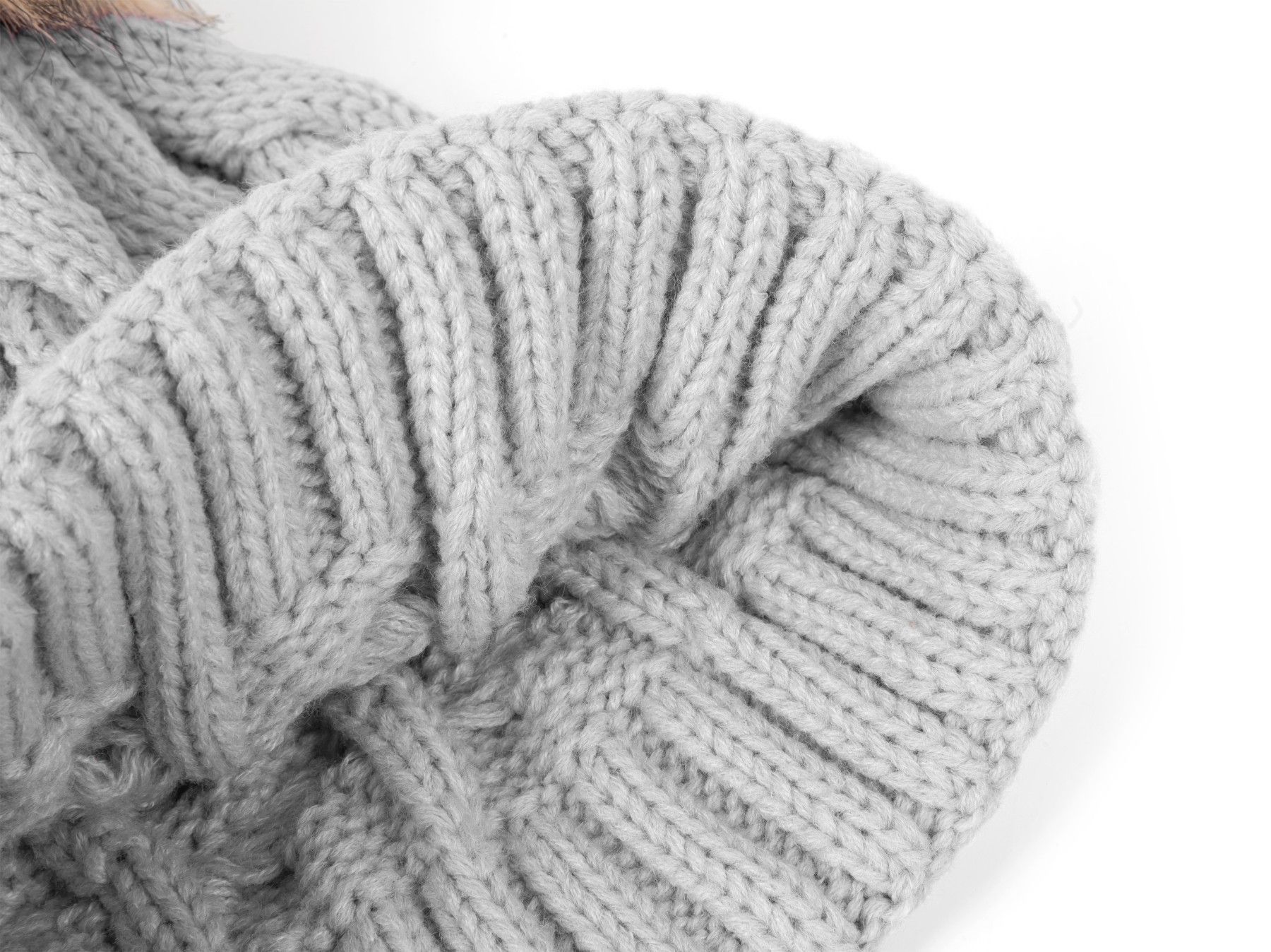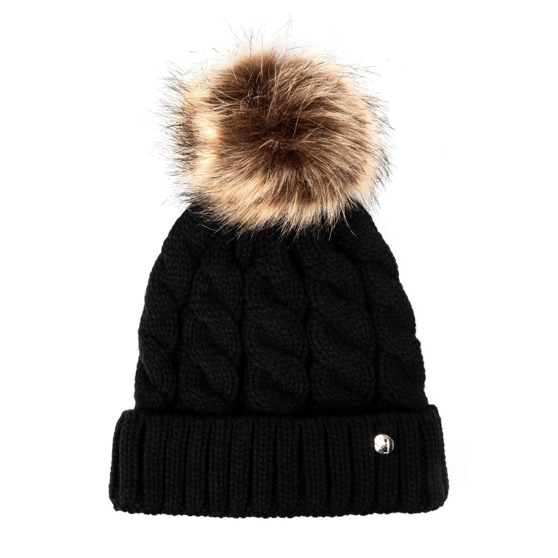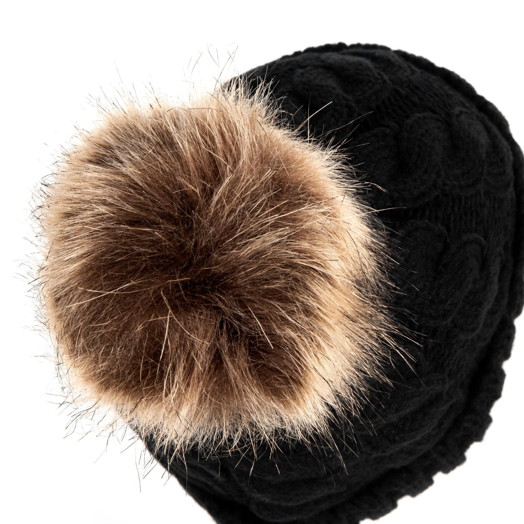 HEYO Gestrickte Damen-Wintermütze mit großem Kunstfellbommel Wintermütze Beanie