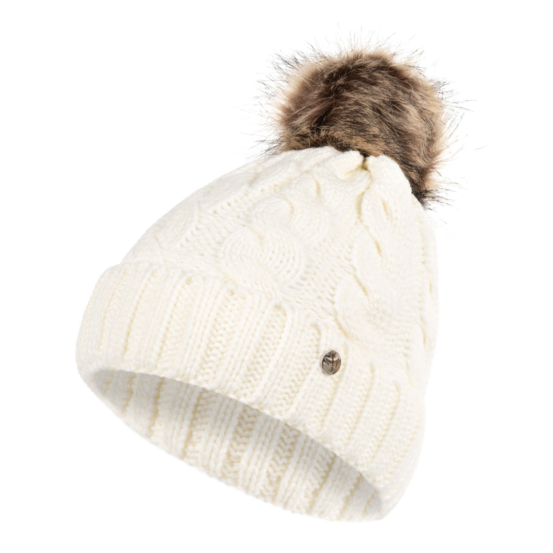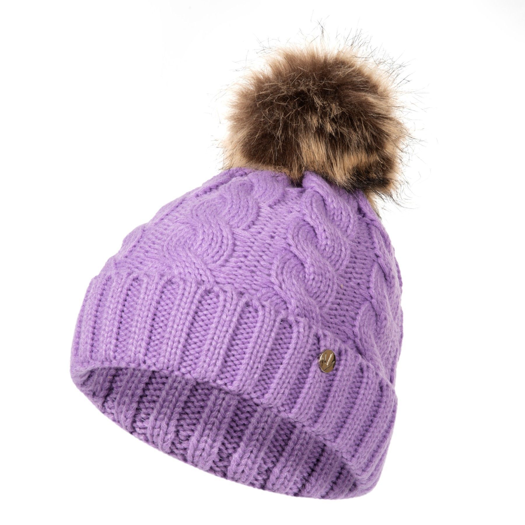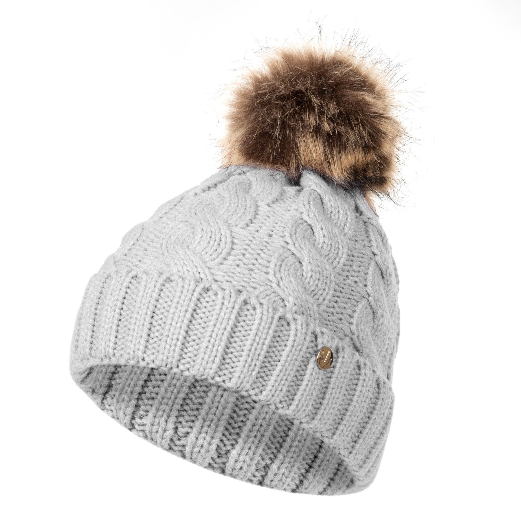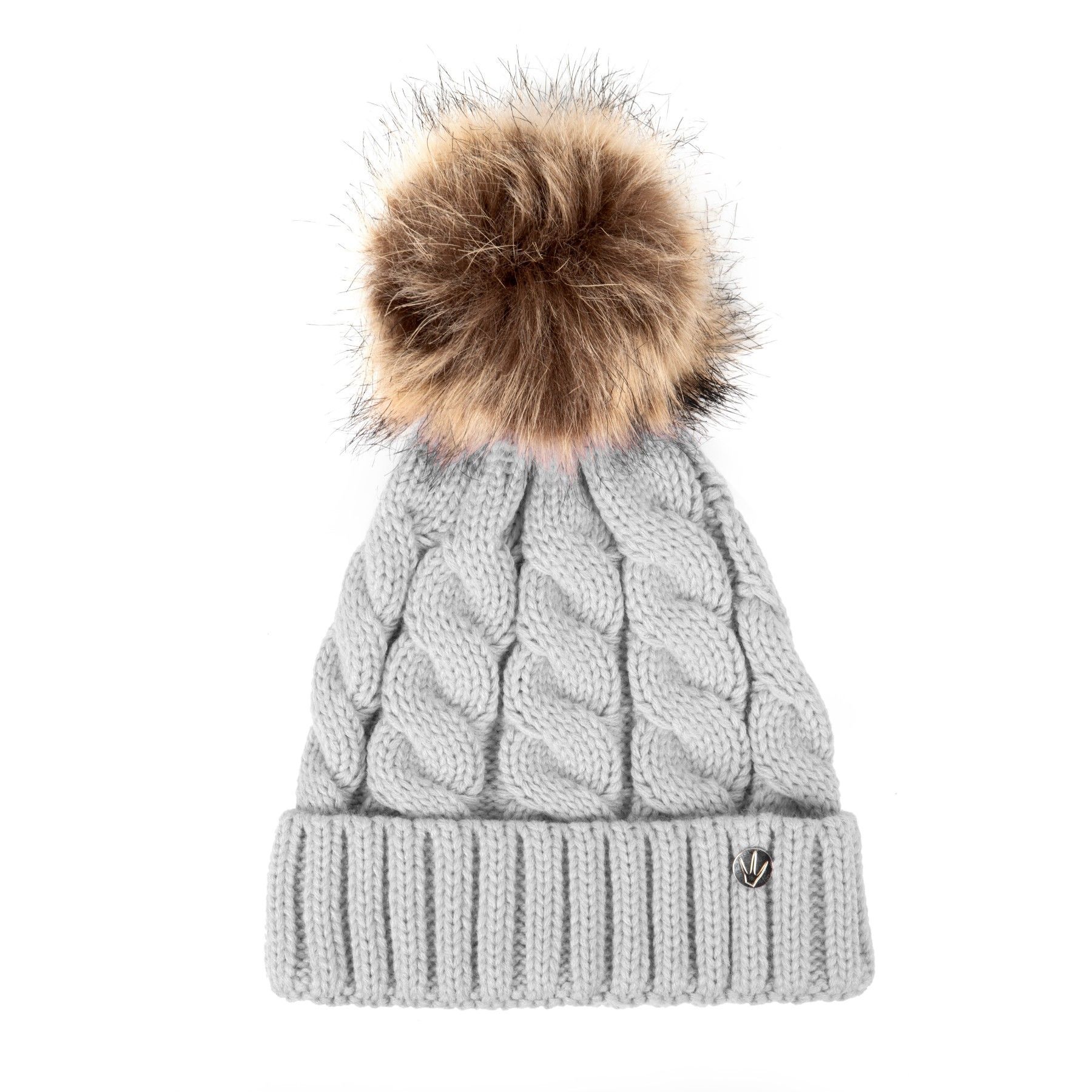 HEYO Gestrickte Damen-Wintermütze mit großem Kunstfellbommel Wintermütze Beanie