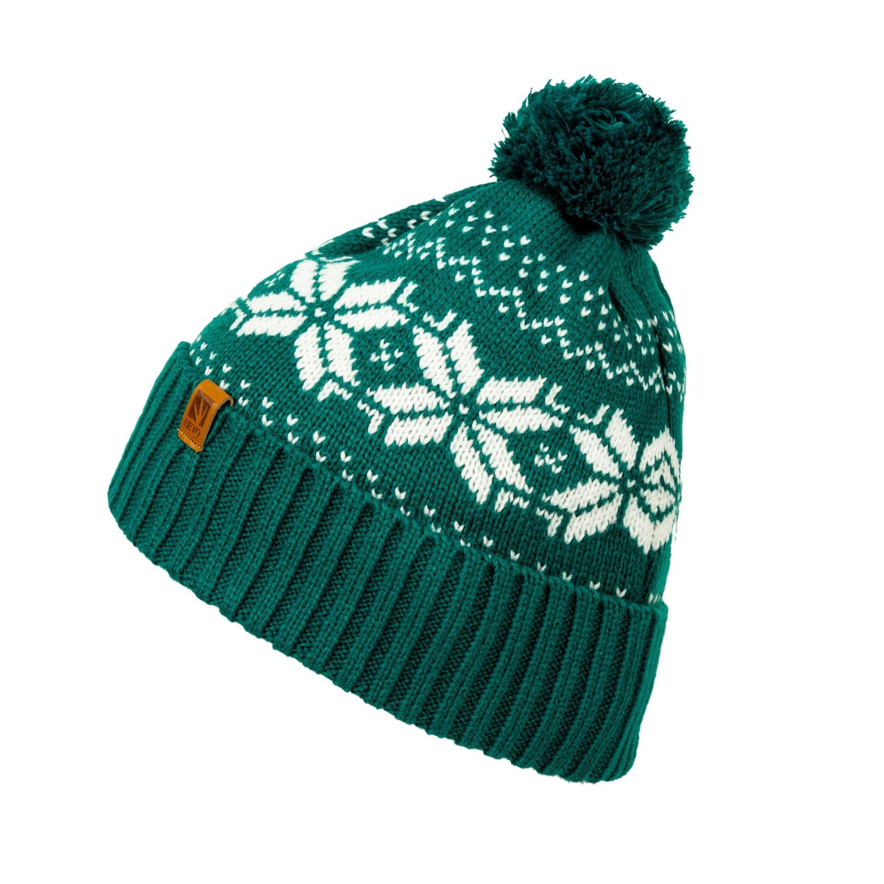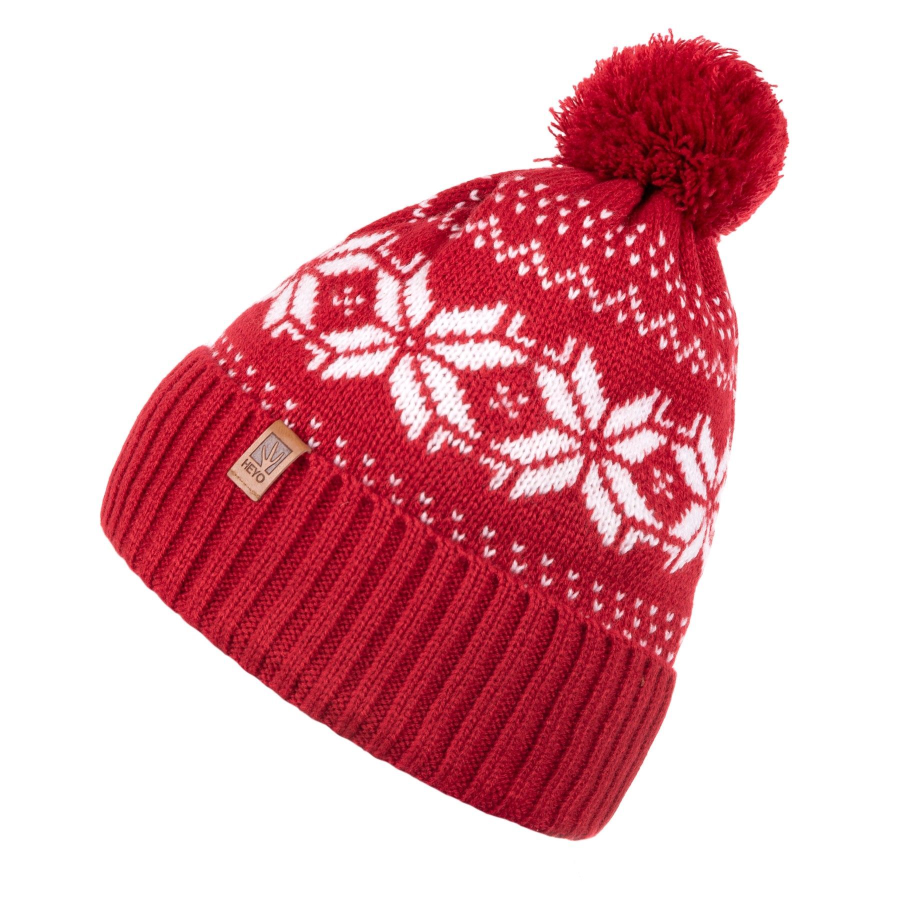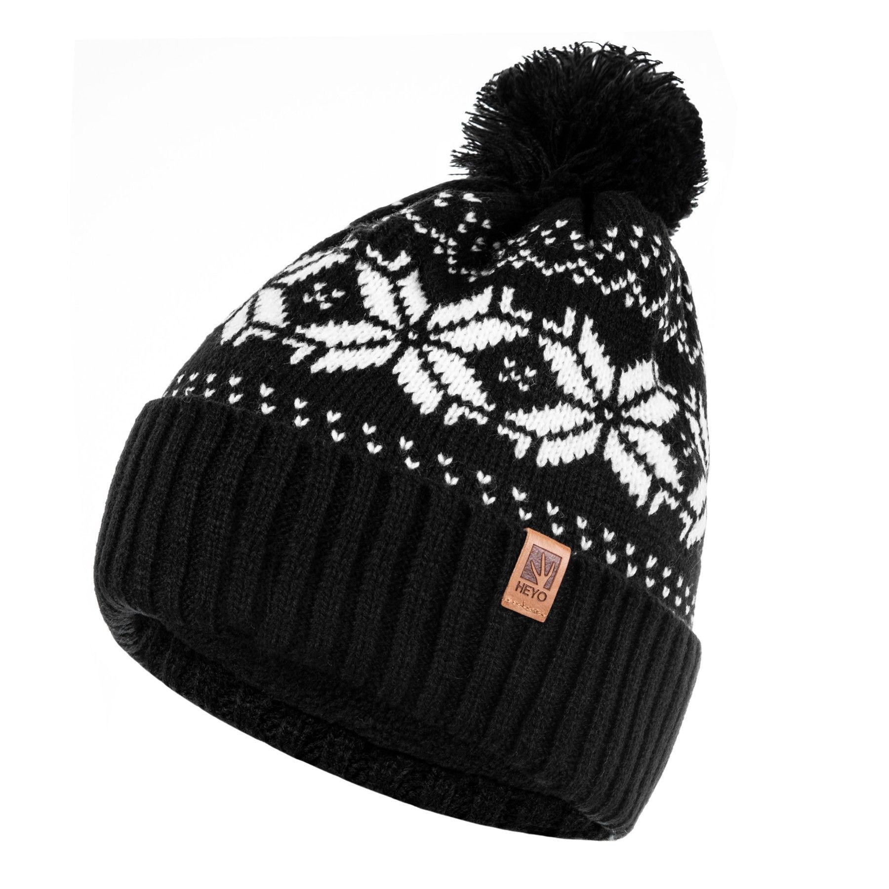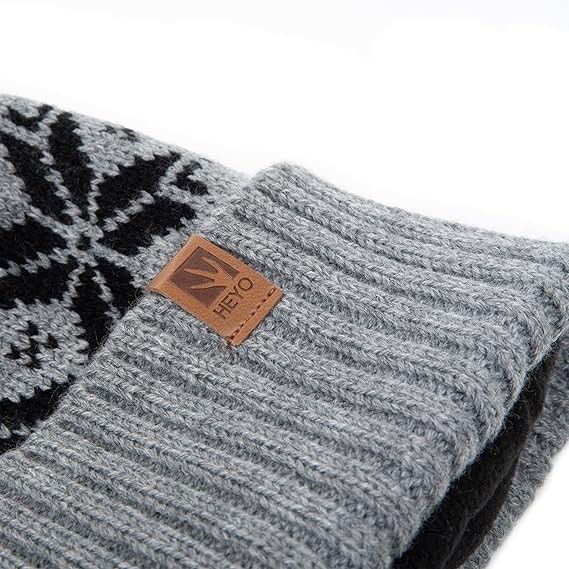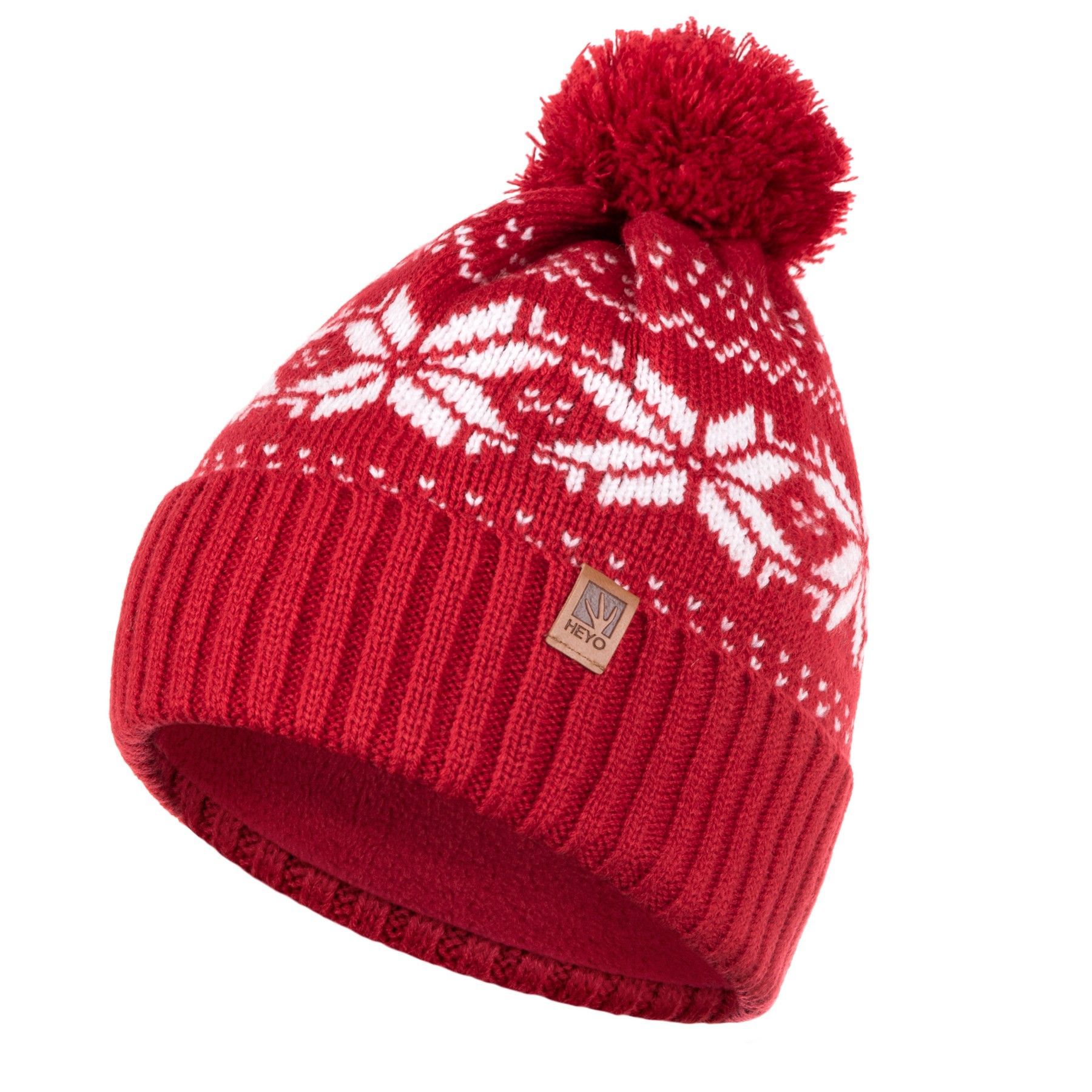 HEYO Mütze Damen Herren Norweger Mütze Bommelmütze Unisex Wintermütze Dick Gefüttert