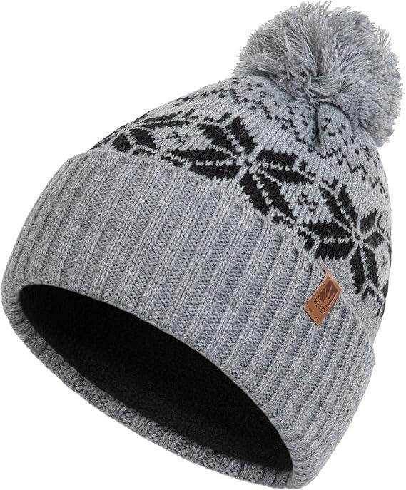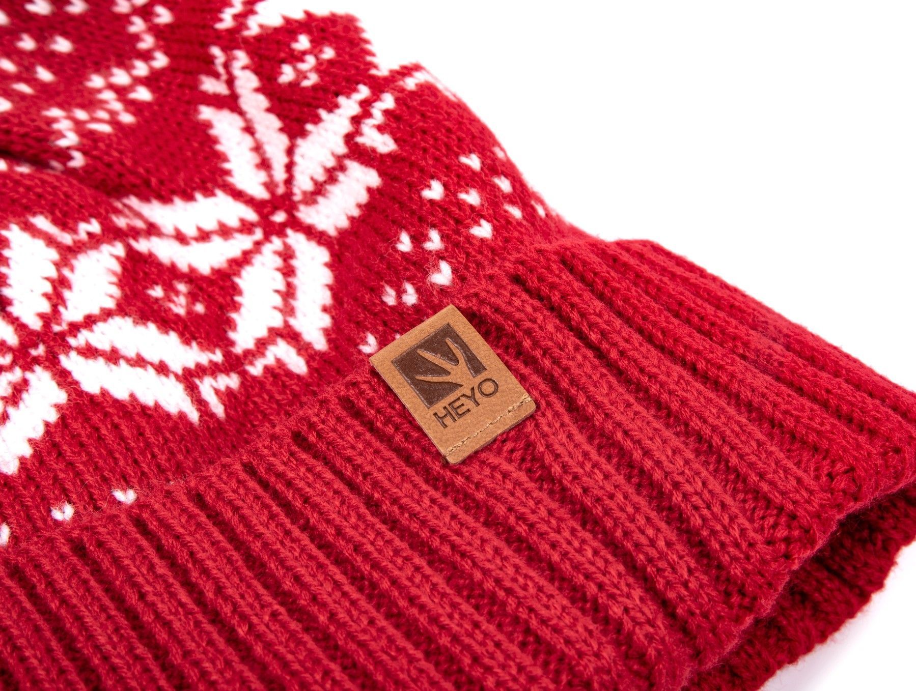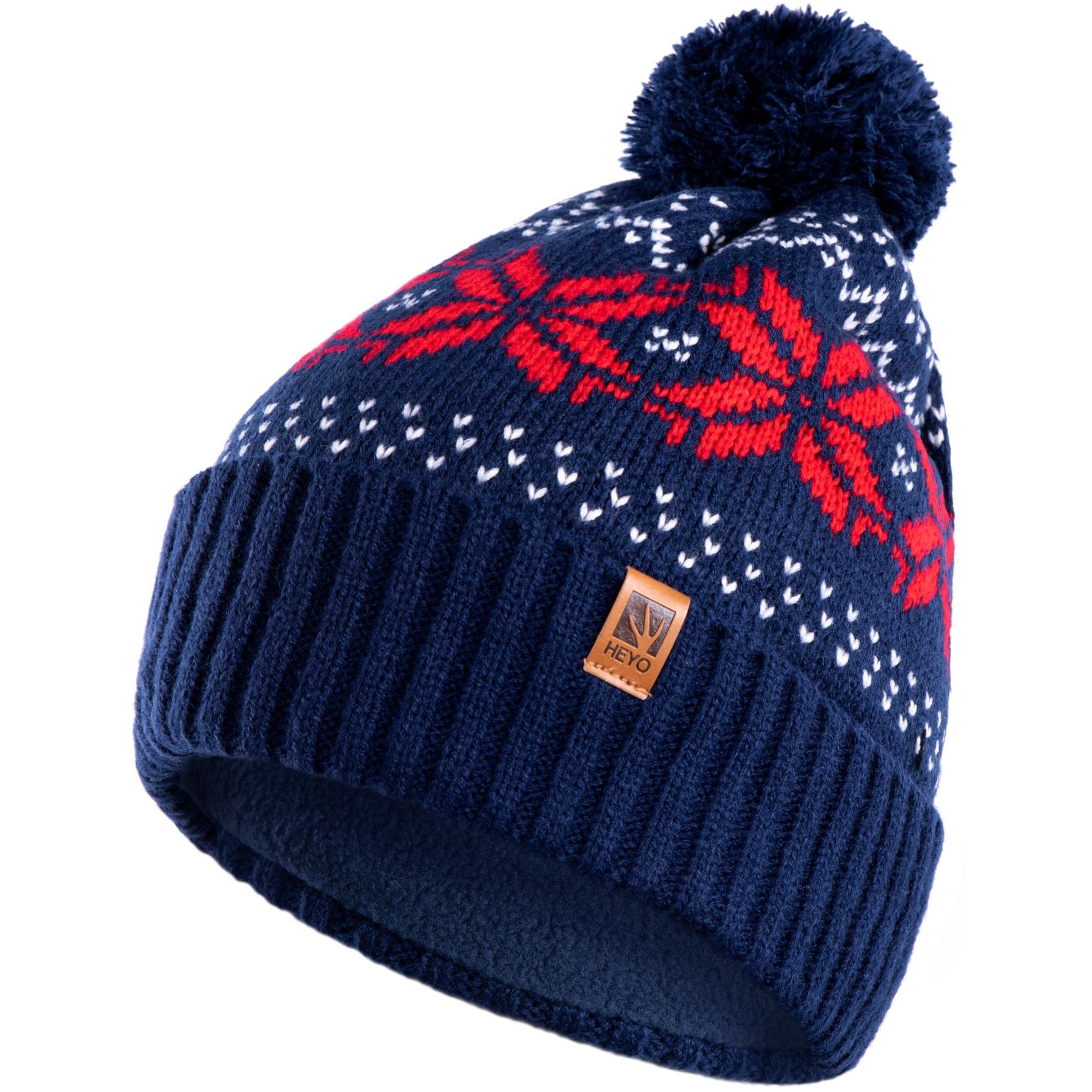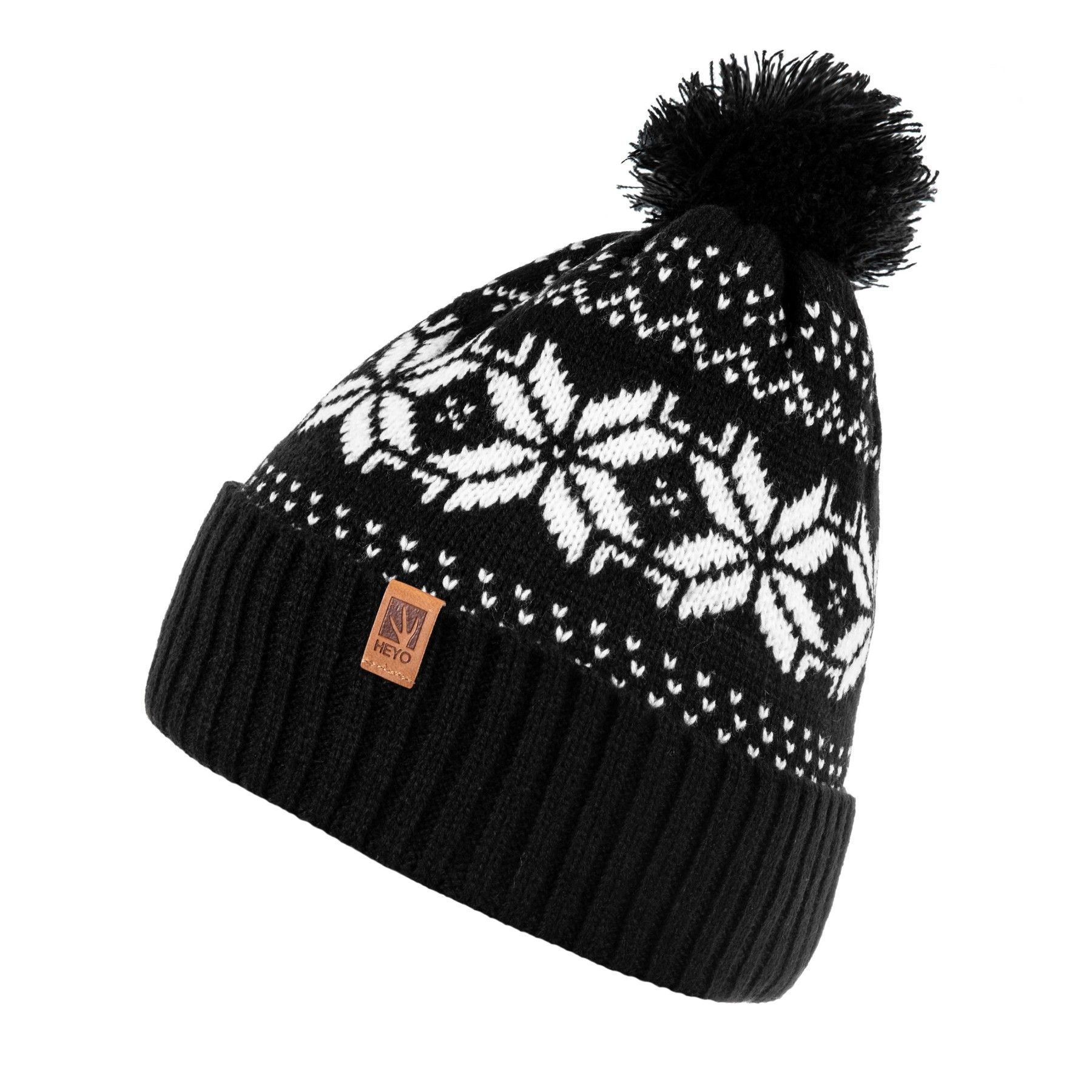 HEYO Mütze Damen Herren Norweger Mütze Bommelmütze Unisex Wintermütze Dick Gefüttert