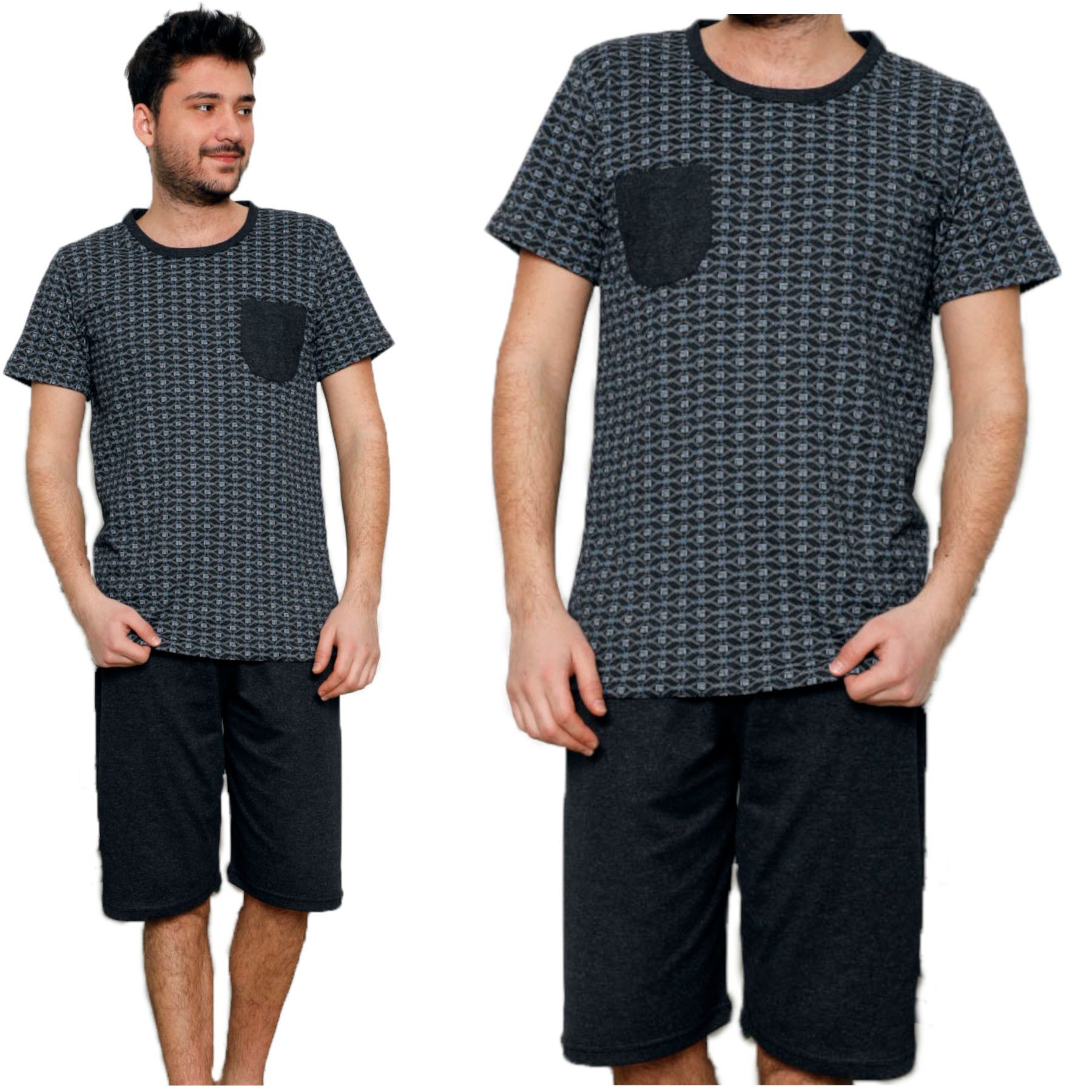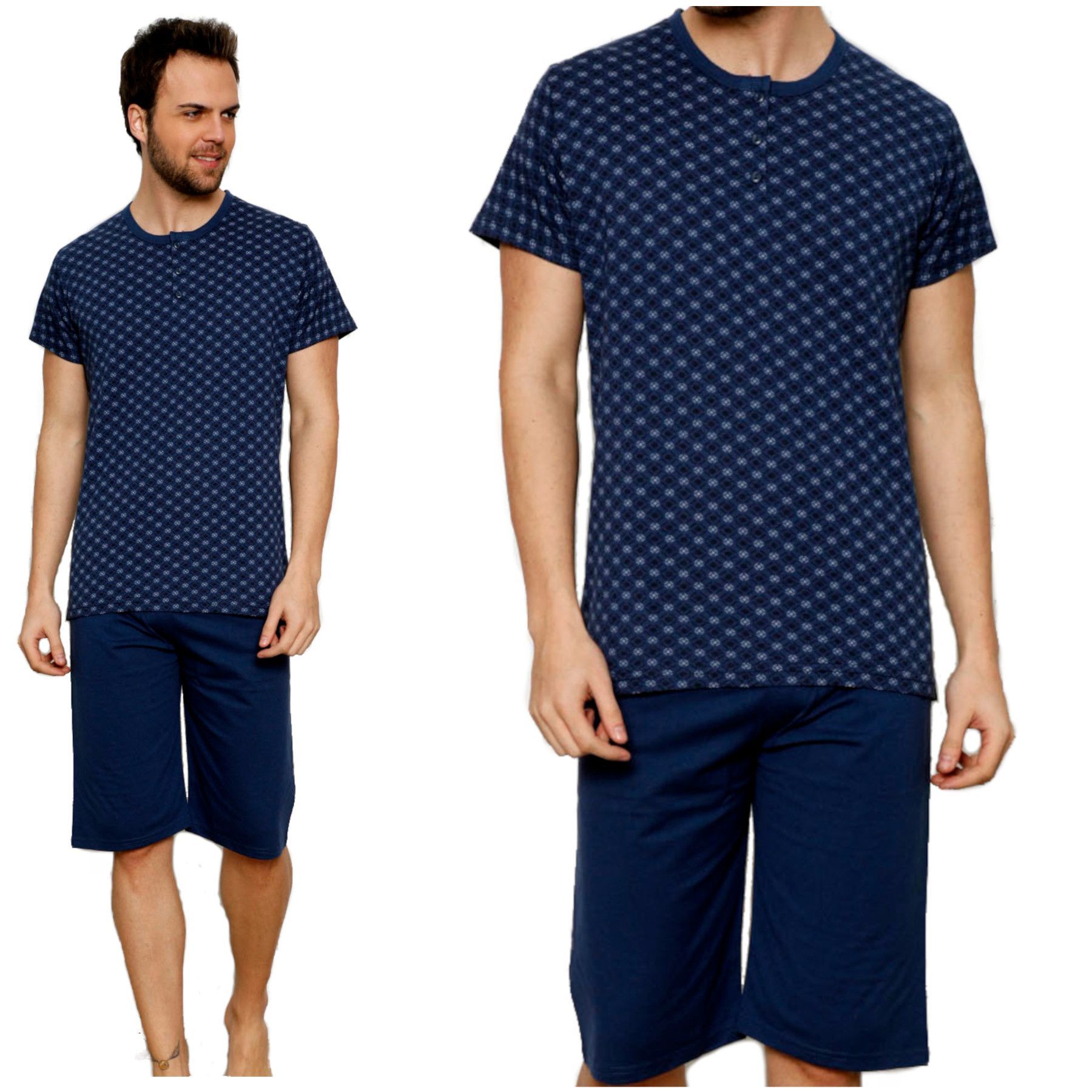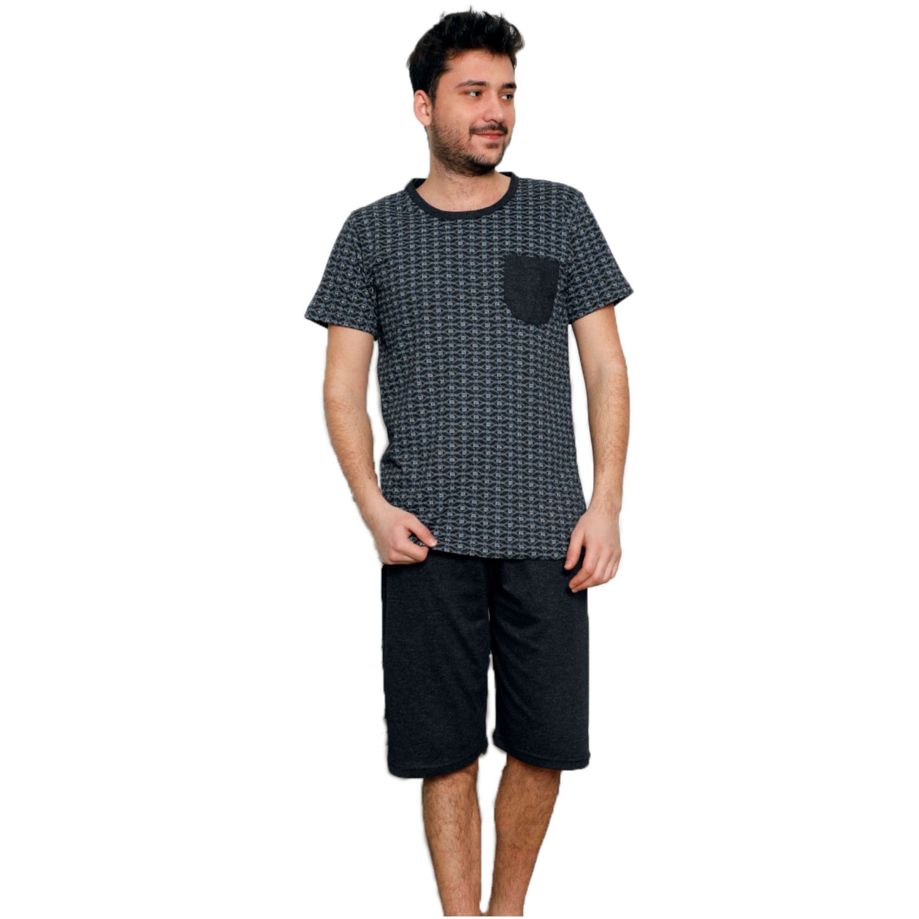 HEYO Schlafanzug Herren Kurz Pyjama aus Baumwolle Zweiteiliges Set Shorts T-shirt M
