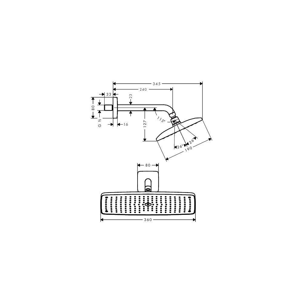 Hansgrohe HG Kopfbrause Raindance E 360 Air 1jet 360mmx190mm mit Brausearm 240mm chrom