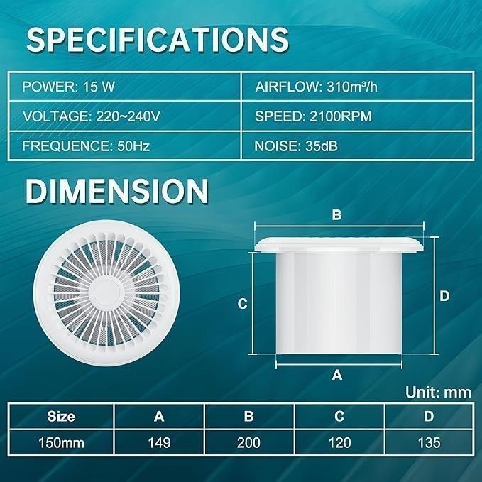 HG Power 150mm Abluftventilator 2 Richtungen Badléfter + Fernbedienung Ventilator