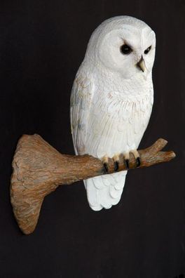• Schneeeule sitzend auf Ast lebensgroß 54cm für draußen aus GFK